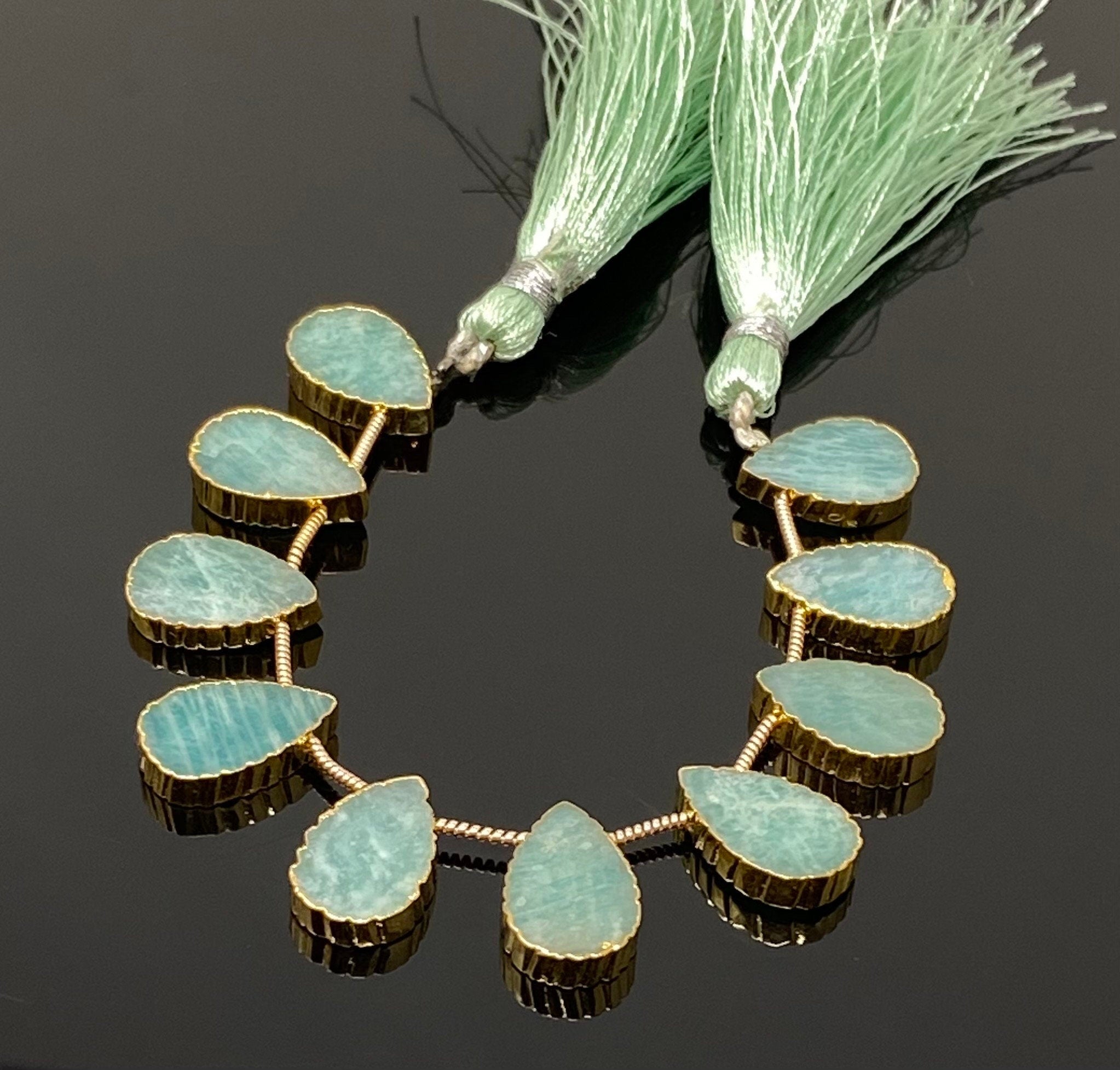 10 Pcs Amazonite Electroplated Slice Beads, Peruvian Amazonite Gemstone Wholesale Beads 14x9mm - 15x10mm