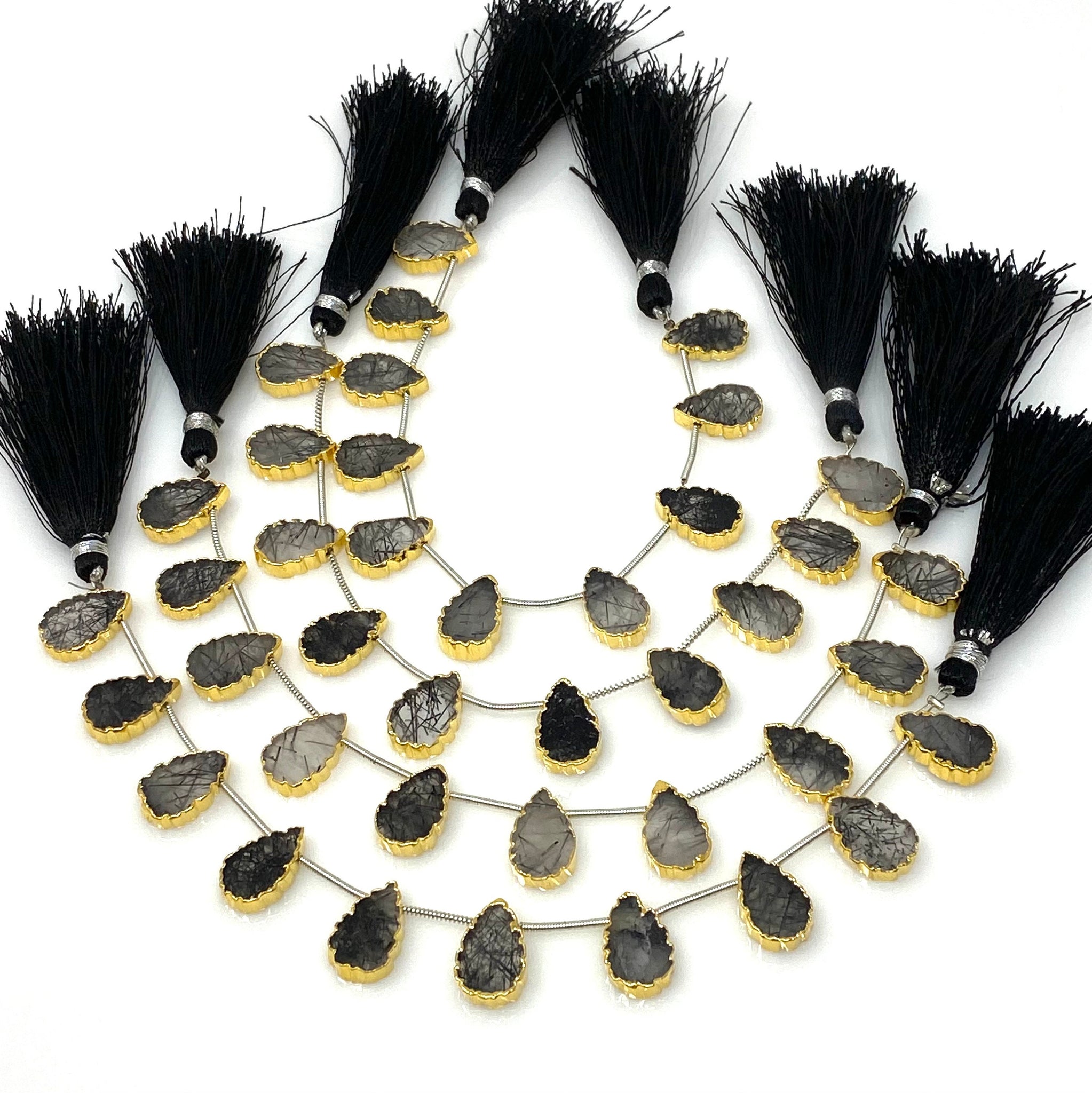 Natural Black Rutilated Quartz Gemstone Electroplated Beads for DIY Jewelry Making at Wholesale Price.