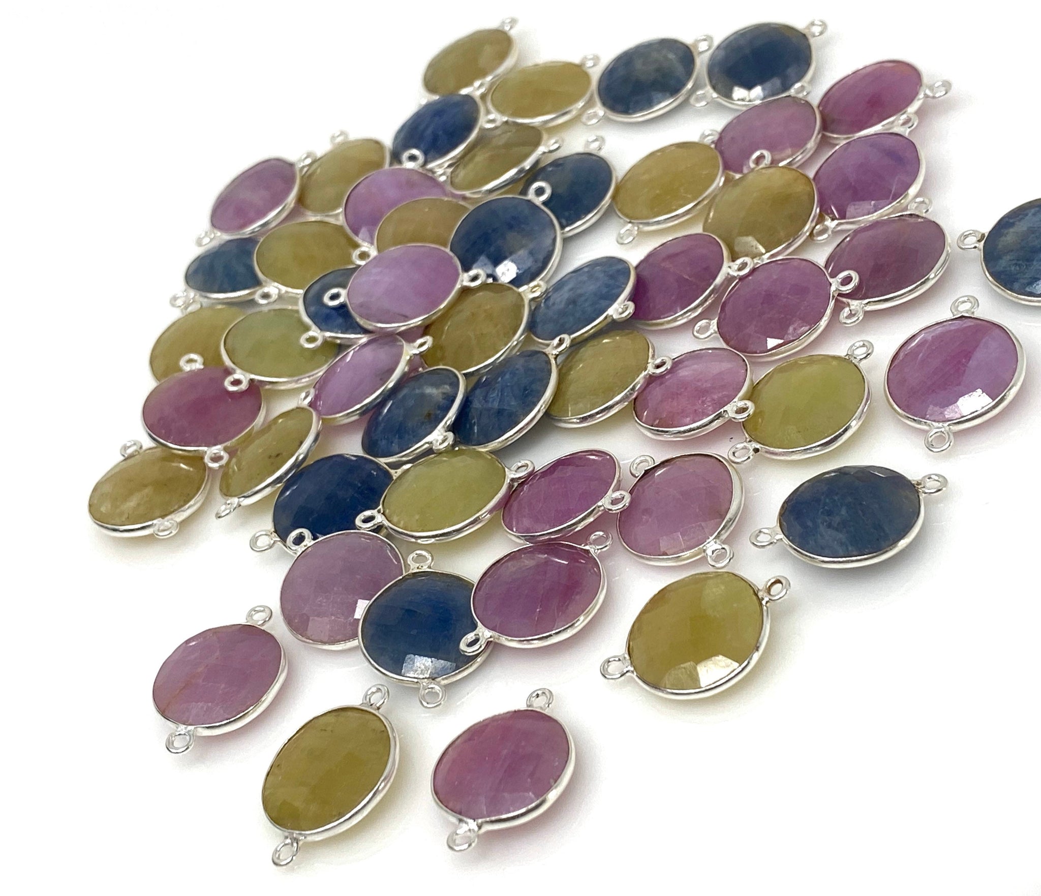 Natural Sapphire Gemstone Sapphire Sterling Silver Connectors Jewelry Findings for Jewelry Making at Wholesale Price.