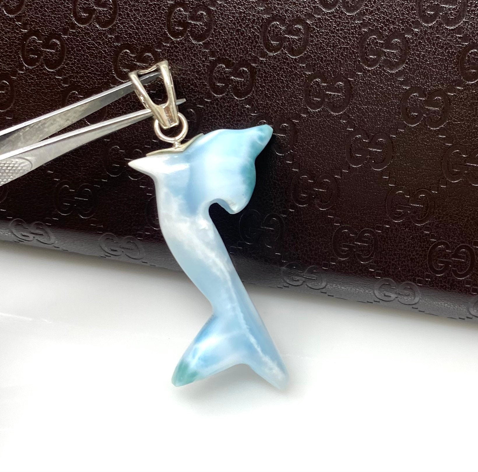 8g Larimar Dolphin Pendant, Larimar Pendant, Bohemian Jewelry, Dominican Republic Larimar Pendant
