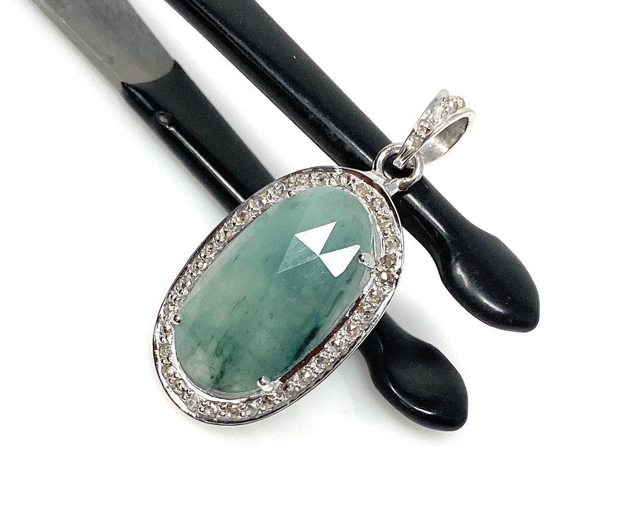 Natural Genuine Rose Cut Sakota Emerald Sterling Silver Diamond Pendant at Wholesale Price.