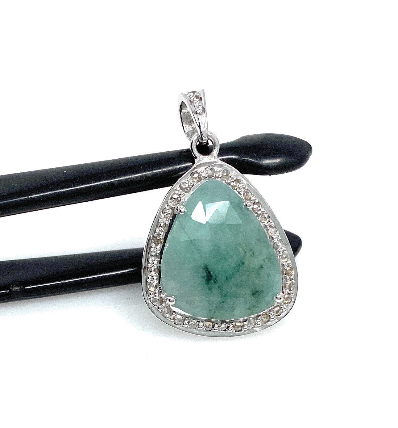 Natural Genuine Rose Cut Sakota Emerald Sterling Silver Diamond Pendant at Wholesale Price.