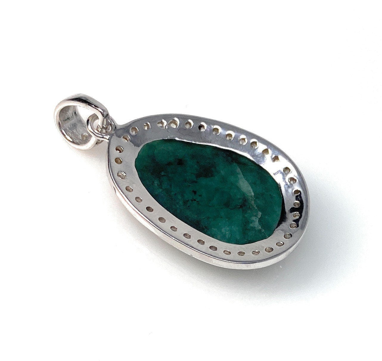 Emerald Diamond Pendant, Natural Emerald Sterling Silver Pendant, May Birthstone Pendant, Pave Diamond Pendant, 1.40” x 0.75”