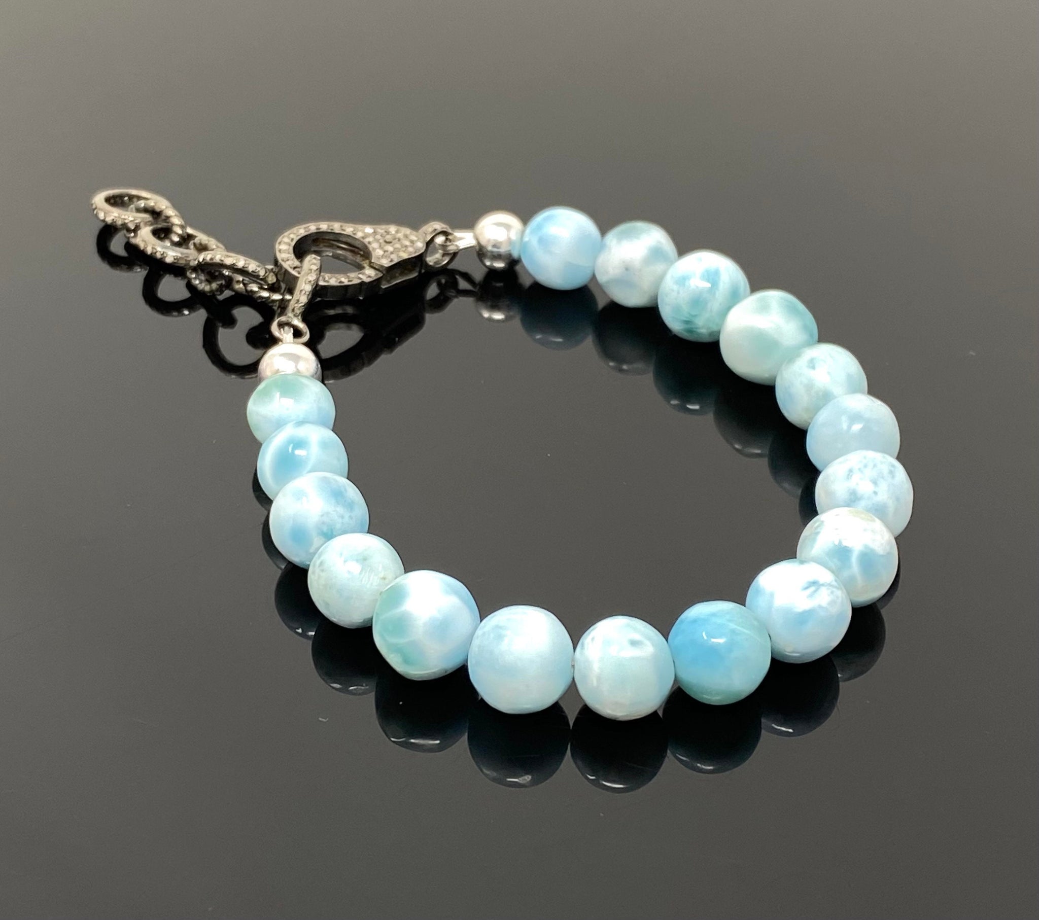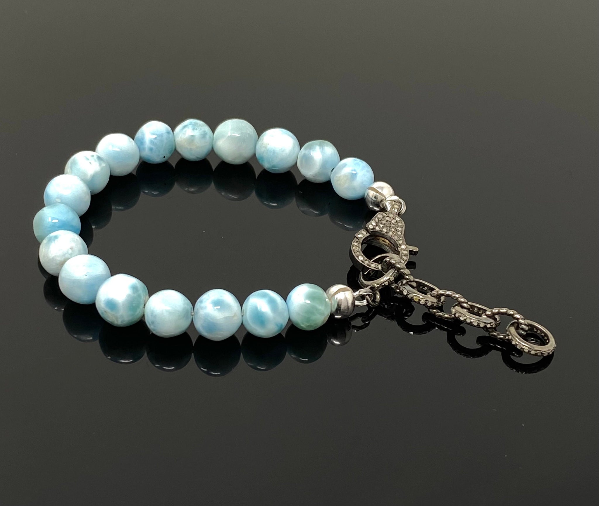This beautiful Handmade Natural Larimar Gemstone Adjustable Bracelet is made with using Genuine Larimar Beads and Genuine Diamond Clasp with Diamond Extender Links to adjust the bracelet to desired size and is an excellent choice for any occasion and makes a great gift for the loved ones.