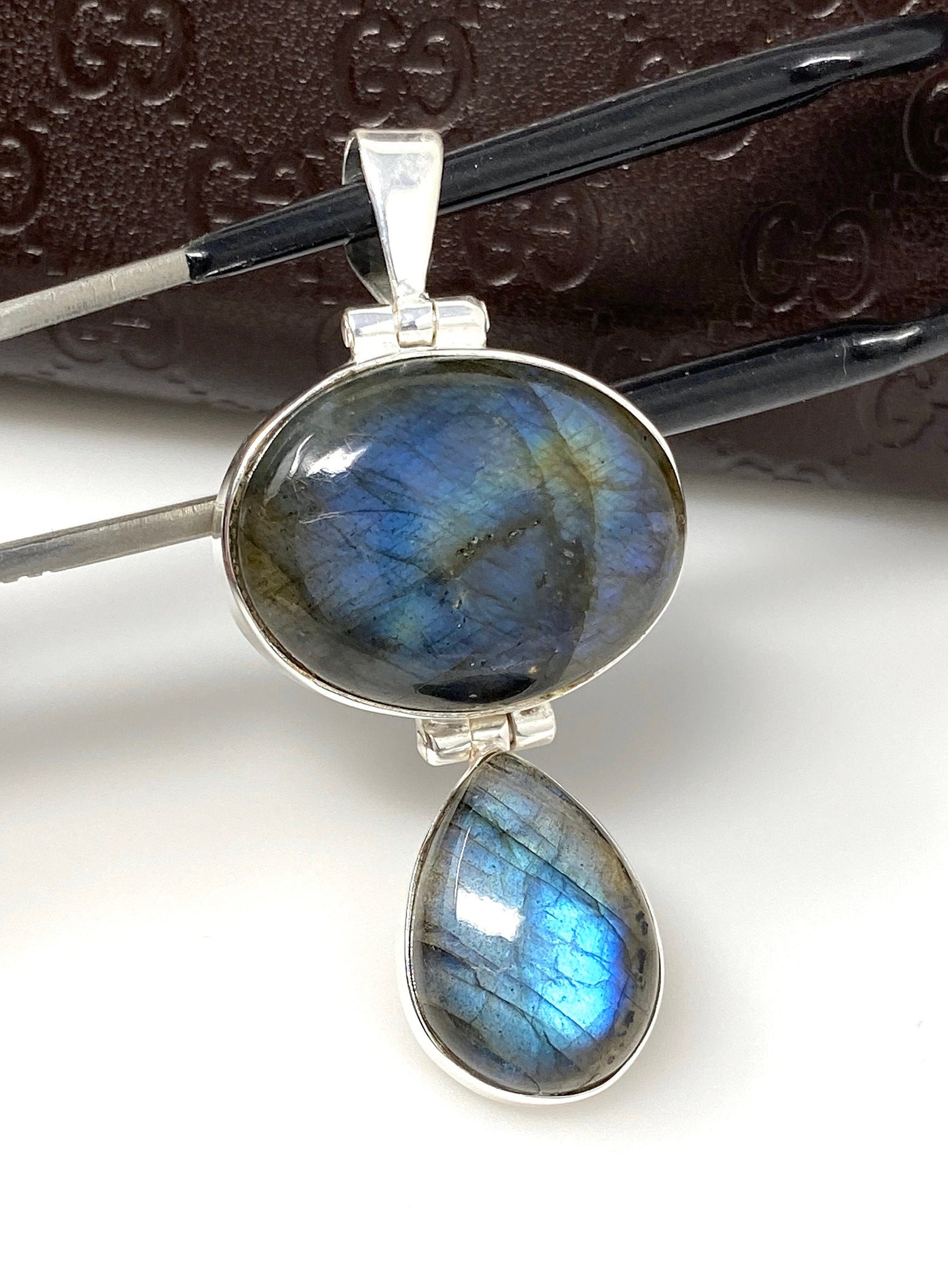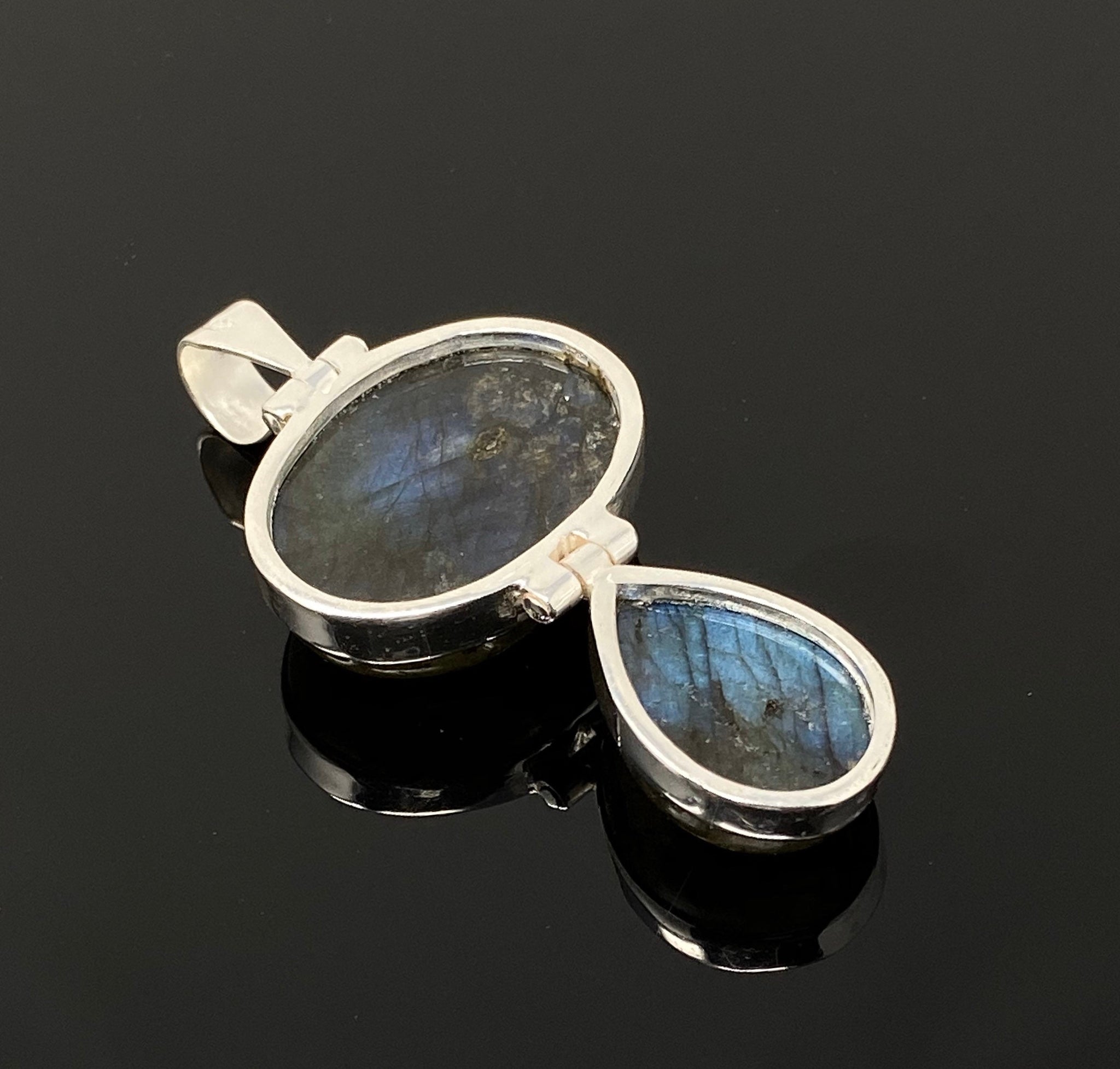 This beautiful Handmade Natural Labradorite 925 Sterling Silver Pendant is made with attaching 2 Pieces together with the unique hinge design which makes the pendant flexible and is an excellent choice for any occasion and makes a great gift for the loved ones.