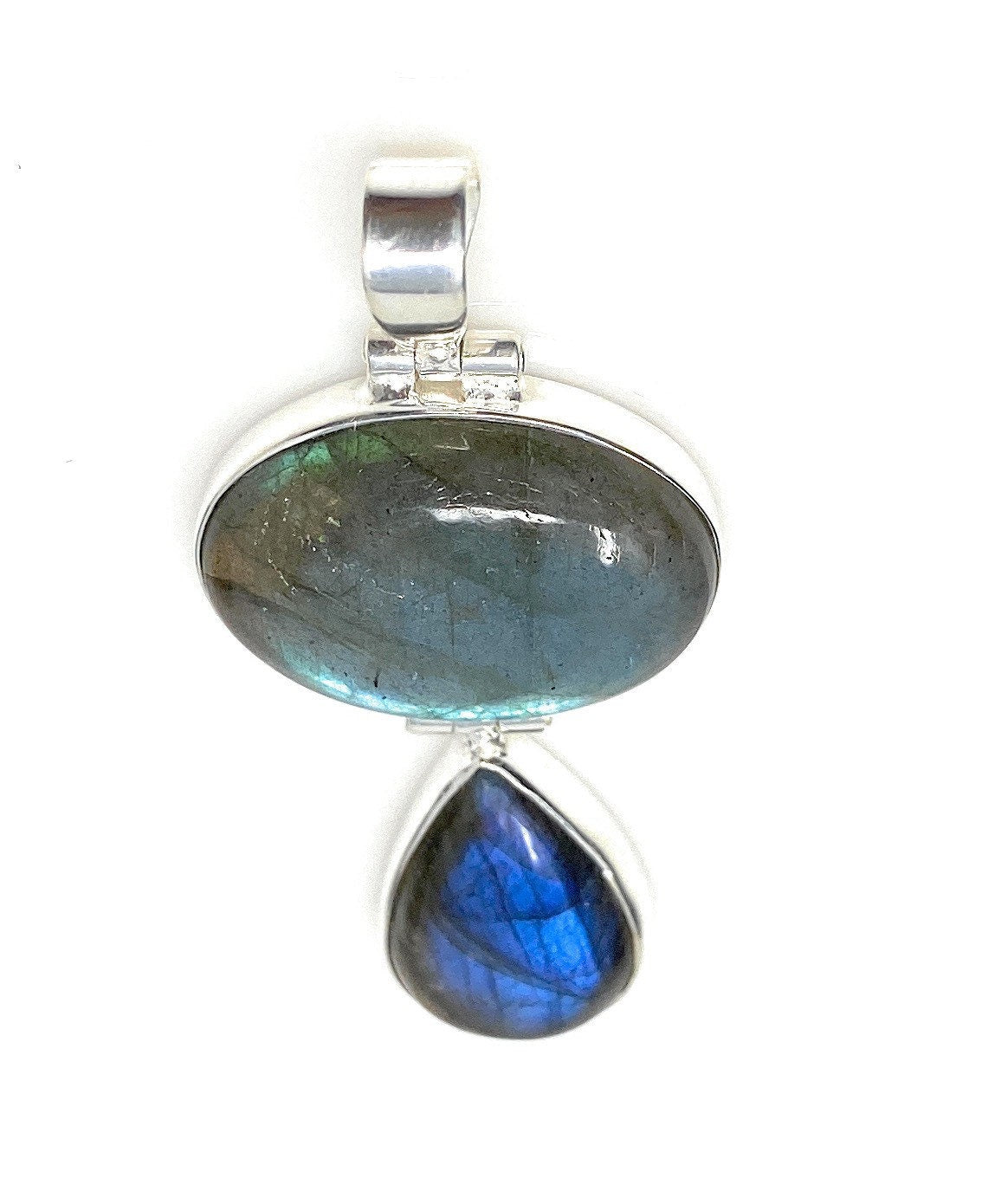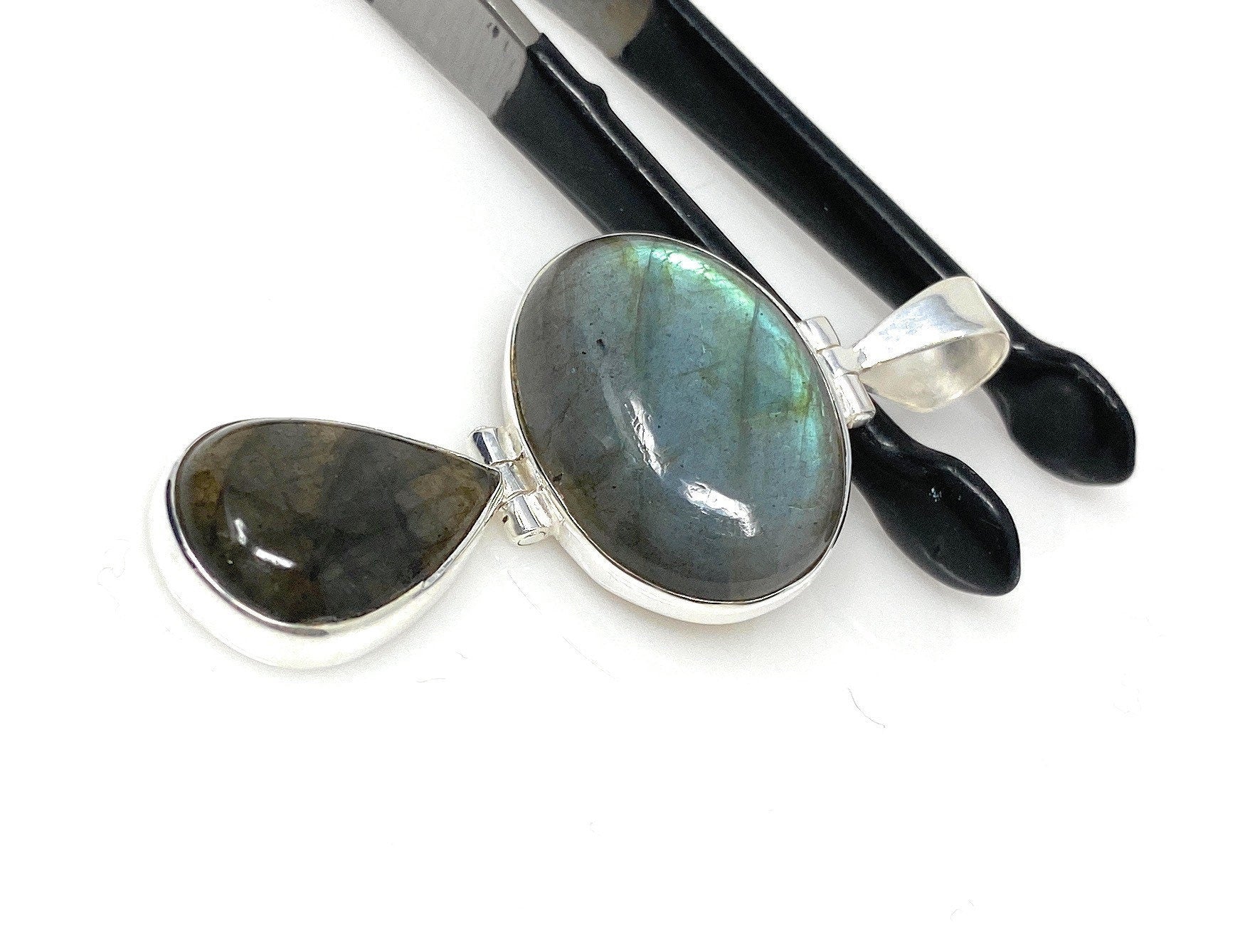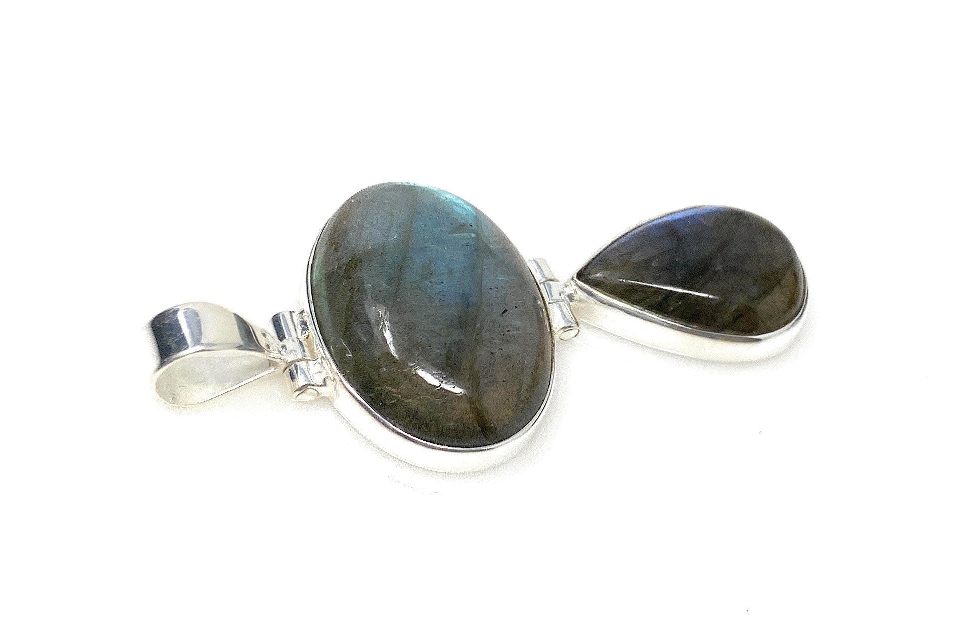 This beautiful Handmade Natural Labradorite 925 Sterling Silver Pendant is made with attaching 2 Pieces together with the unique hinge design which makes the pendant flexible and is an excellent choice for any occasion and makes a great gift for the loved ones.