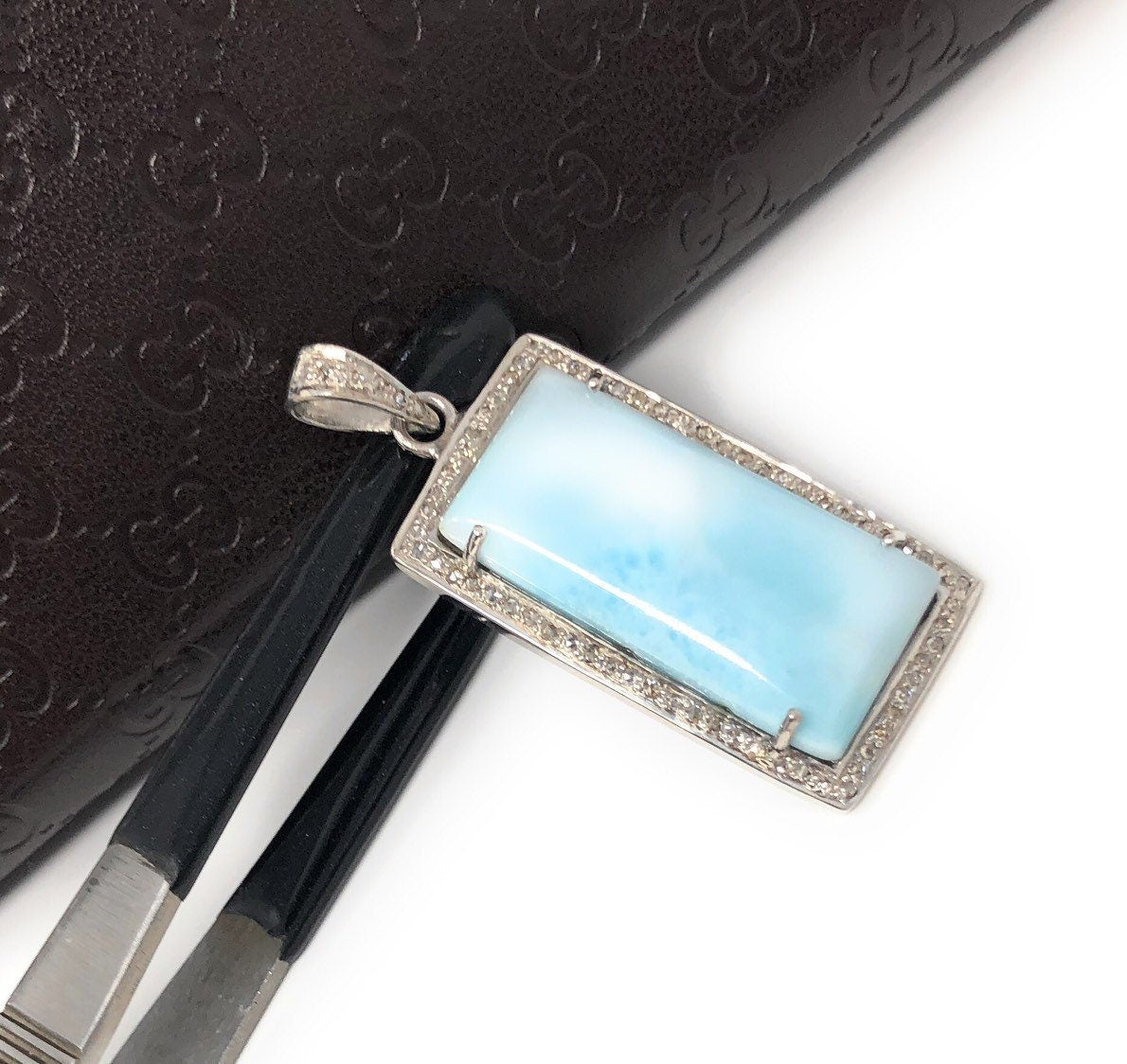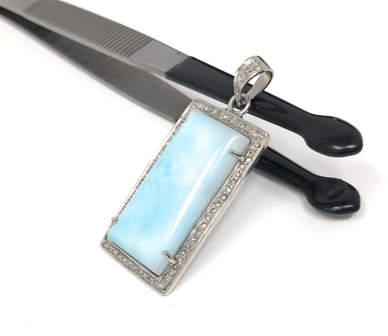 This beautiful Handmade AAA+ Grade Natural Larimar Gemstone Rectangle Shape 925 Sterling Silver Large Pave Diamond Bezel Setting Pendant is an excellent choice for any occasion and makes a great gift for the loved ones.