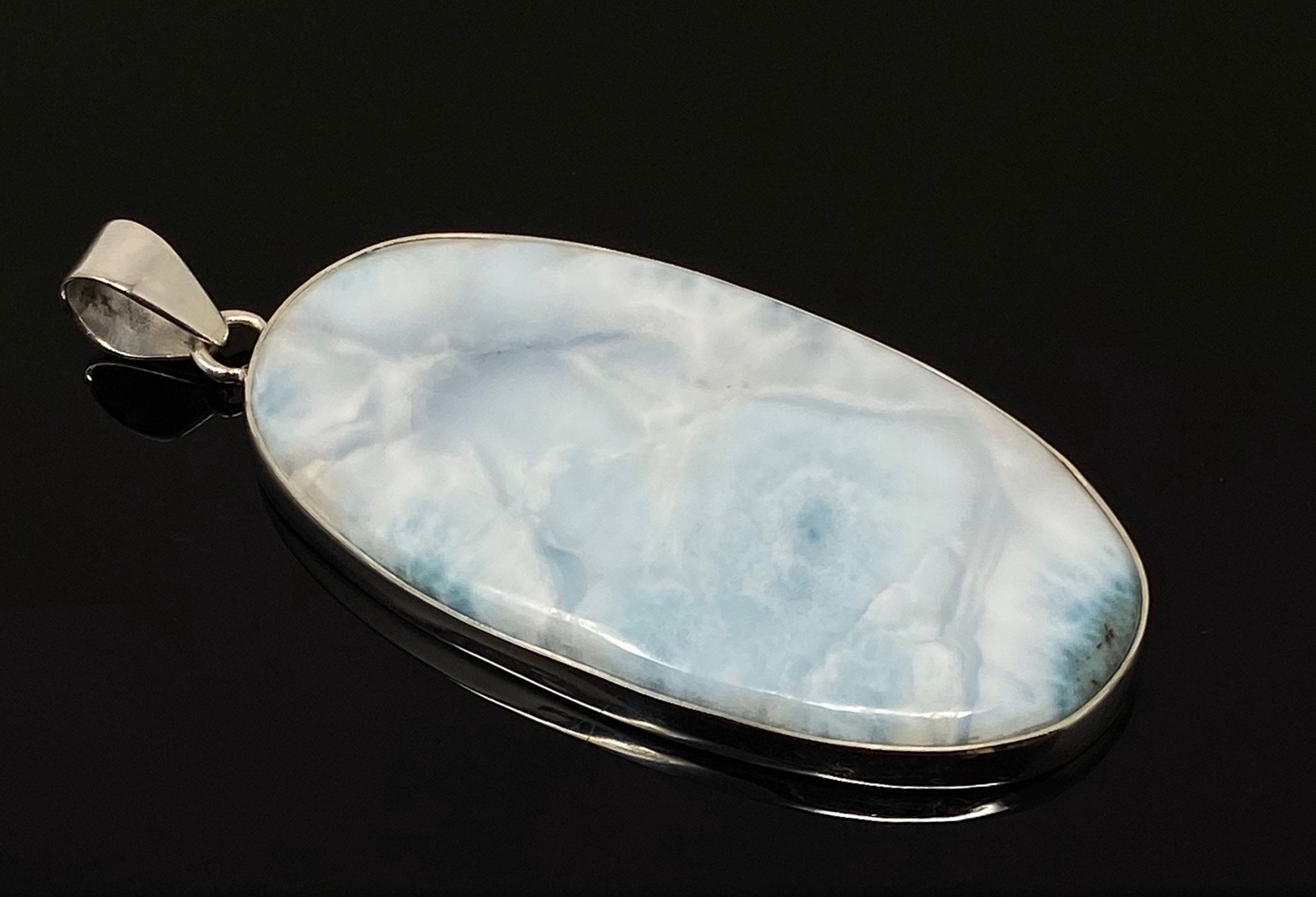 Larimar Pendant, Gemstone Pendant, Sterling Silver Pendant, Bohemian Jewelry, Natural Gemstone Pendant, 76.5mm X 32.25mm