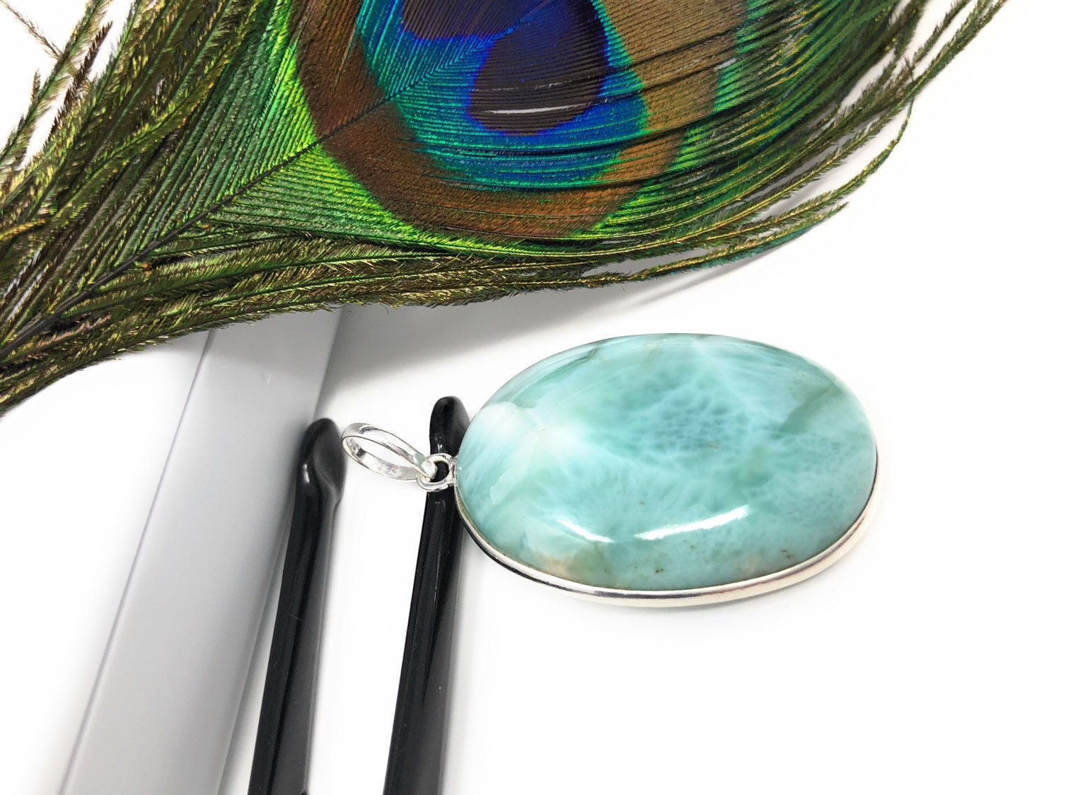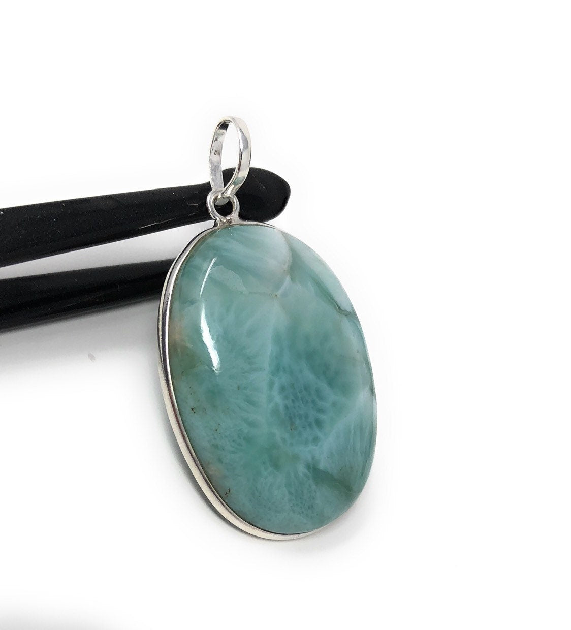 Larimar Pendant, Gemstone Pendant, Larimar, Gemstone Jewelry, Silver Pendant, Sterling Silver Pendant, Natural Gemstone Pendant, 47.65x25mm