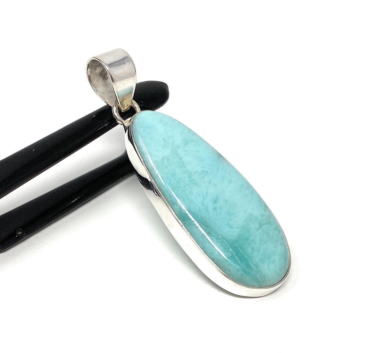Larimar Pendant, Gemstone Pendant, Bohemian Jewelry, Sterling Silver Pendant, Natural Gemstone Pendant, 53mm X 18mm