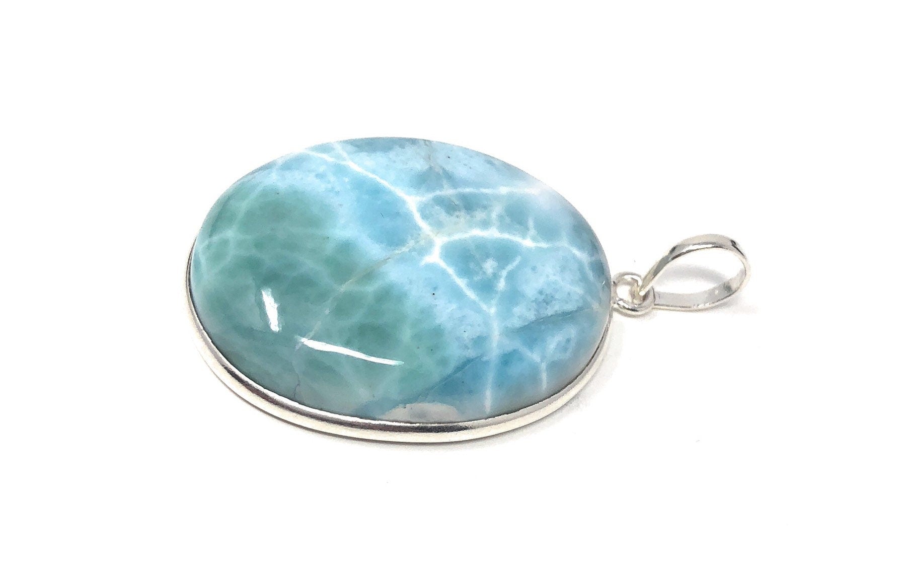 This beautiful Handmade AAA Grade Natural Larimar Gemstone Oval Shape 925 Sterling Silver Large Pendant is an excellent choice for any occasion and makes a great gift for the loved ones.