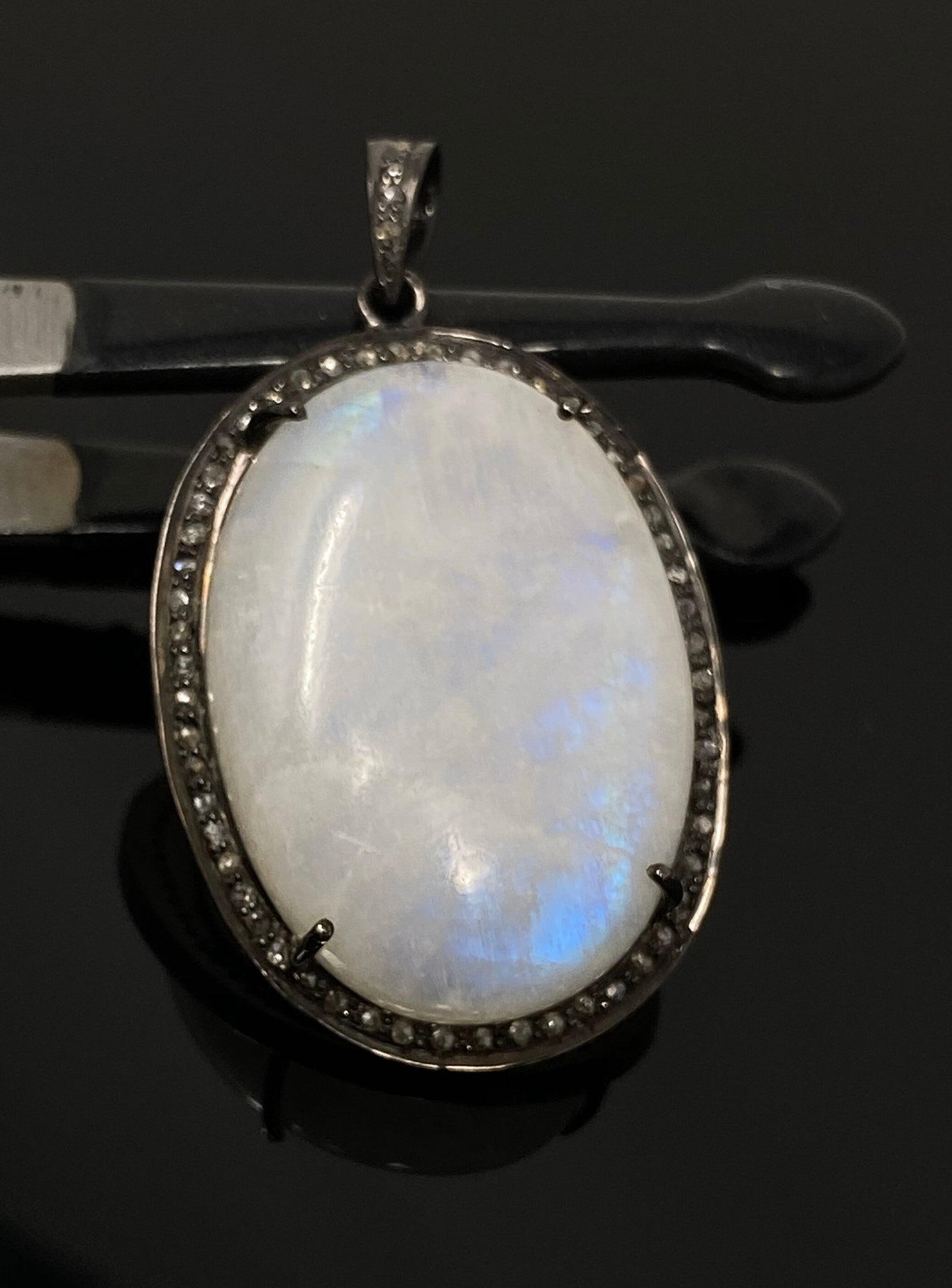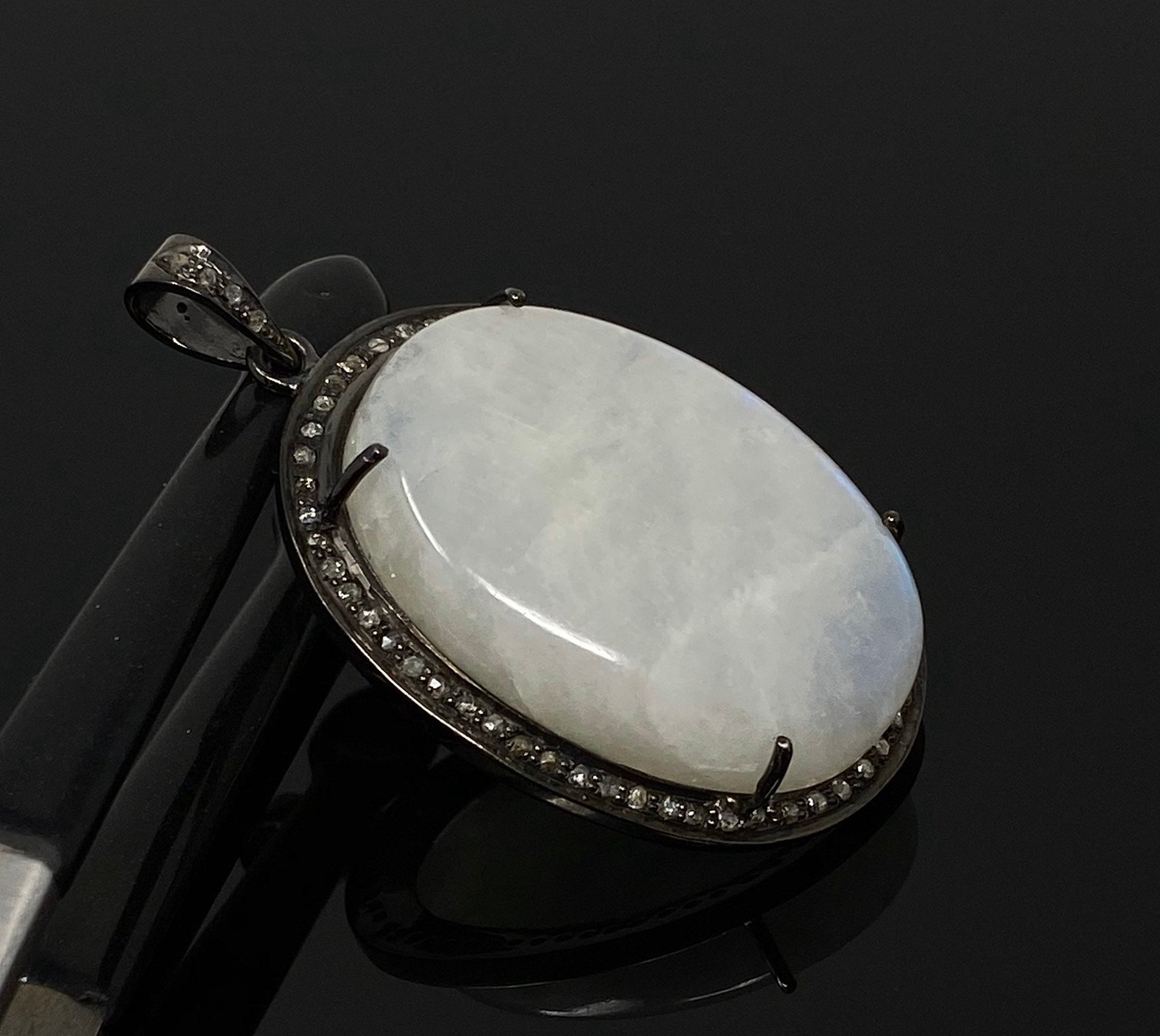 White Moonstone Gemstone Pave Diamond Oxidized Sterling Silver Exclusive Pendant at Wholesale Price.