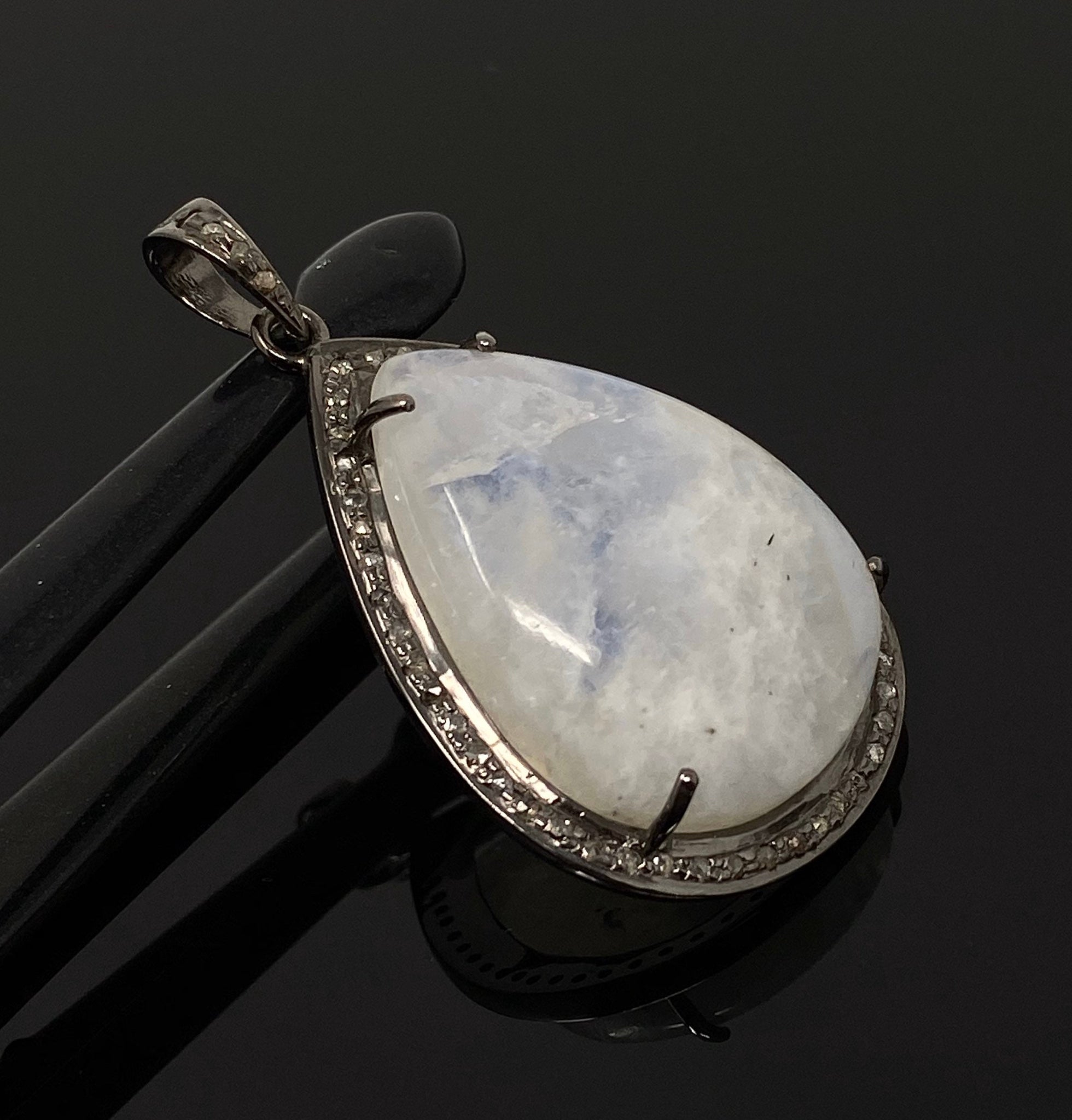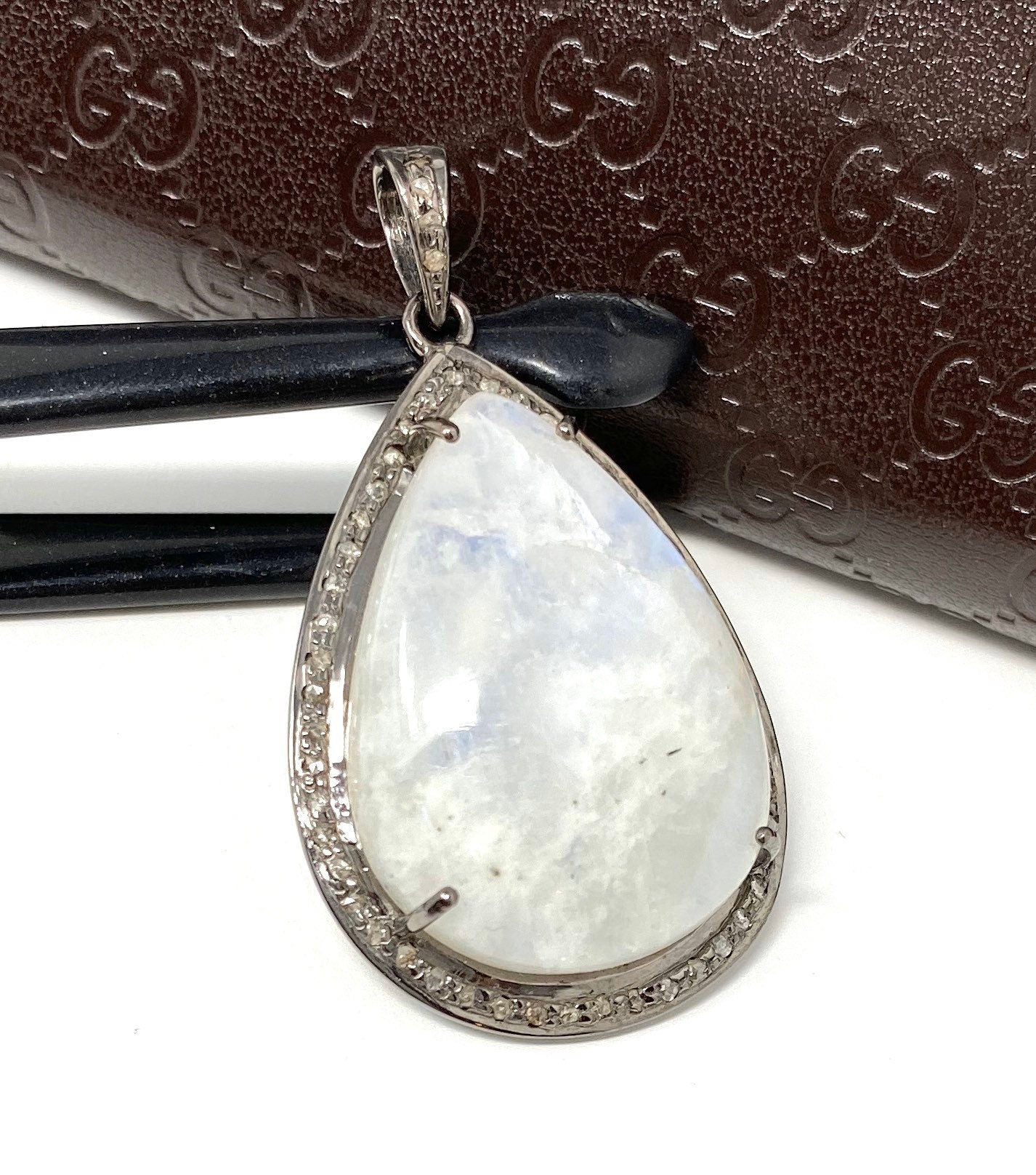 This exclusive beautiful Handmade AAA+ Grade Large Natural Rainbow Moonstone Gemstone Drop Shape Oxidized 925 Sterling Silver Pave Diamond Bezel Setting Pendant is an excellent choice for any occasion and makes a great gift for the loved ones.