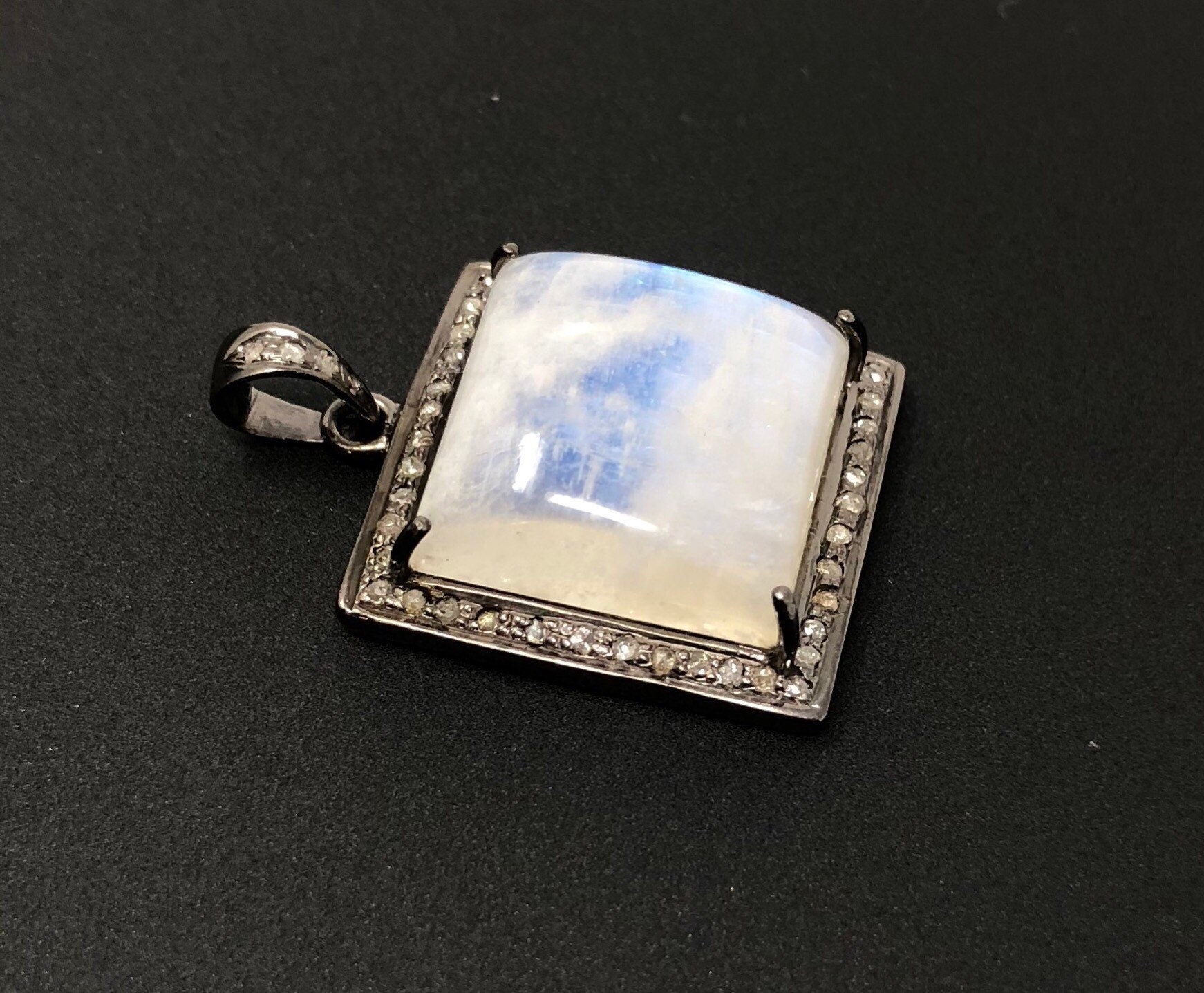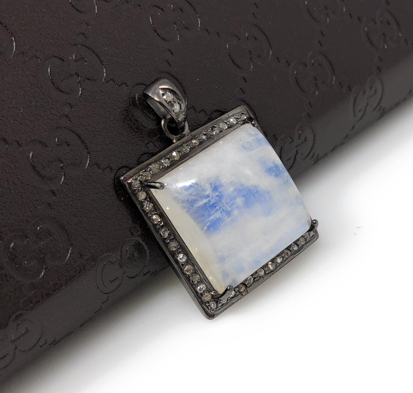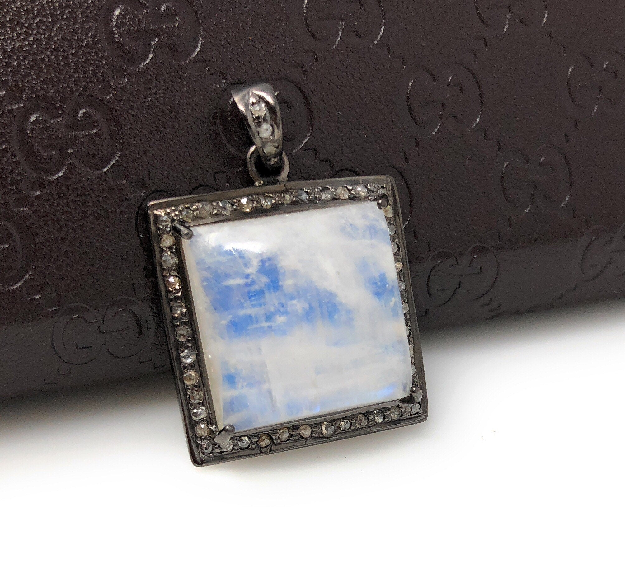 This exclusive beautiful Handmade AAA+ Grade Large Natural Rainbow Moonstone Gemstone Square Shape Oxidized 925 Sterling Silver Pave Diamond Bezel Setting Pendant is an excellent choice for any occasion and makes a great gift for the loved ones.