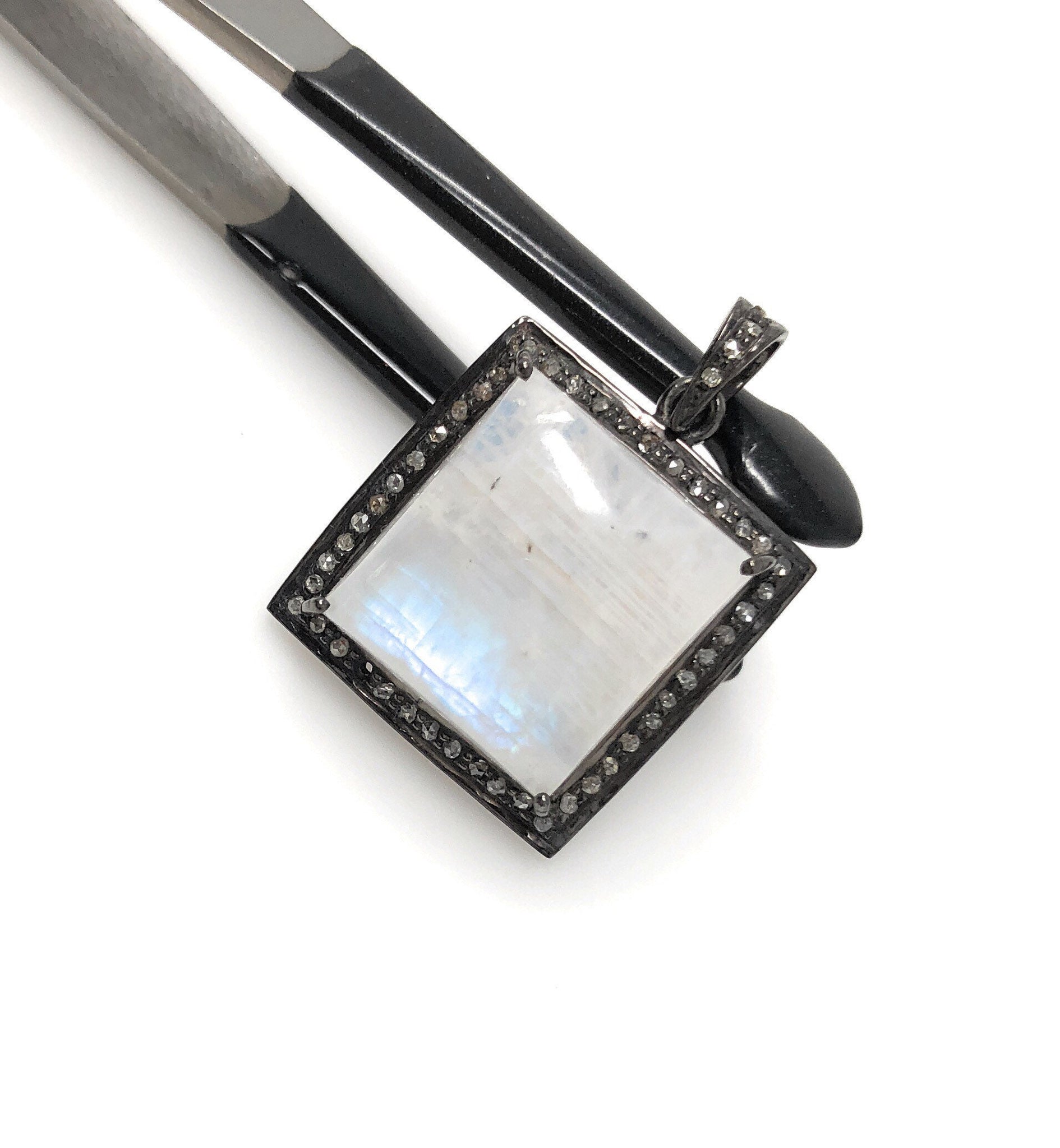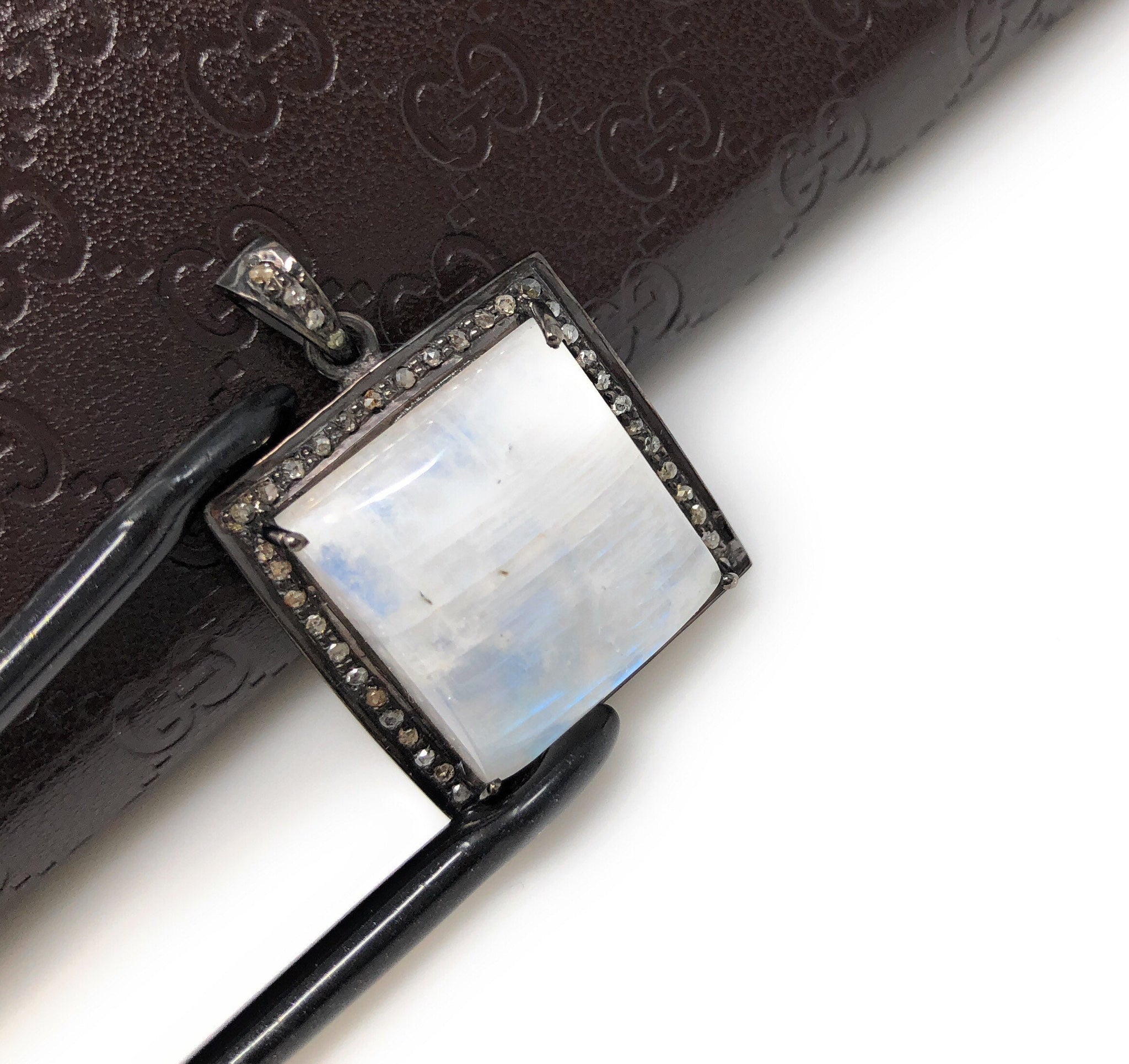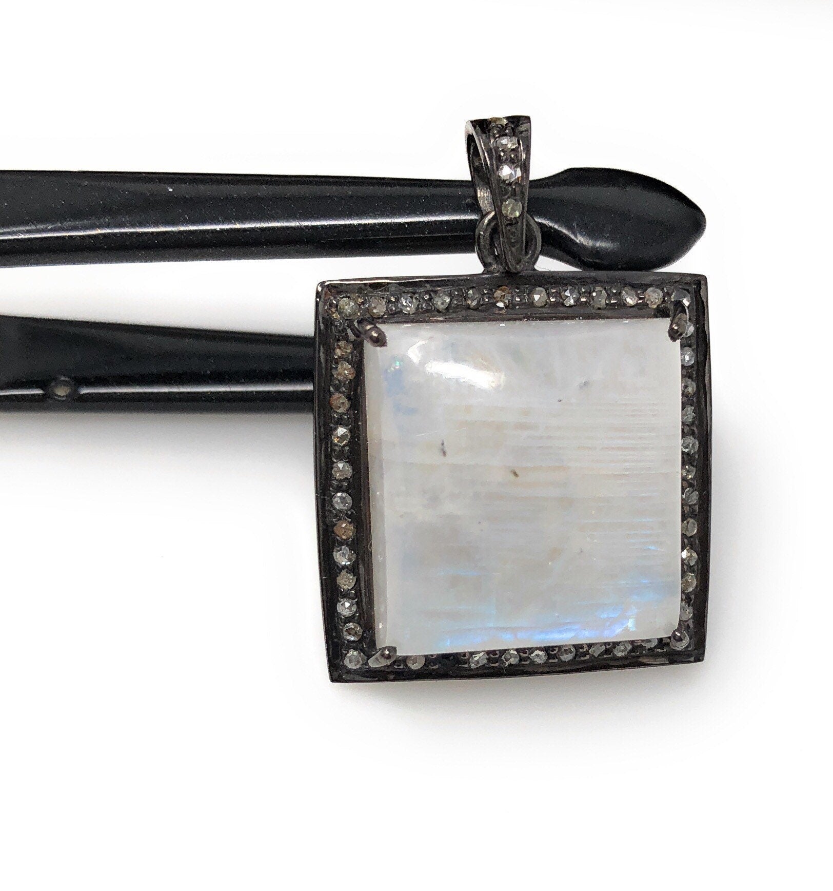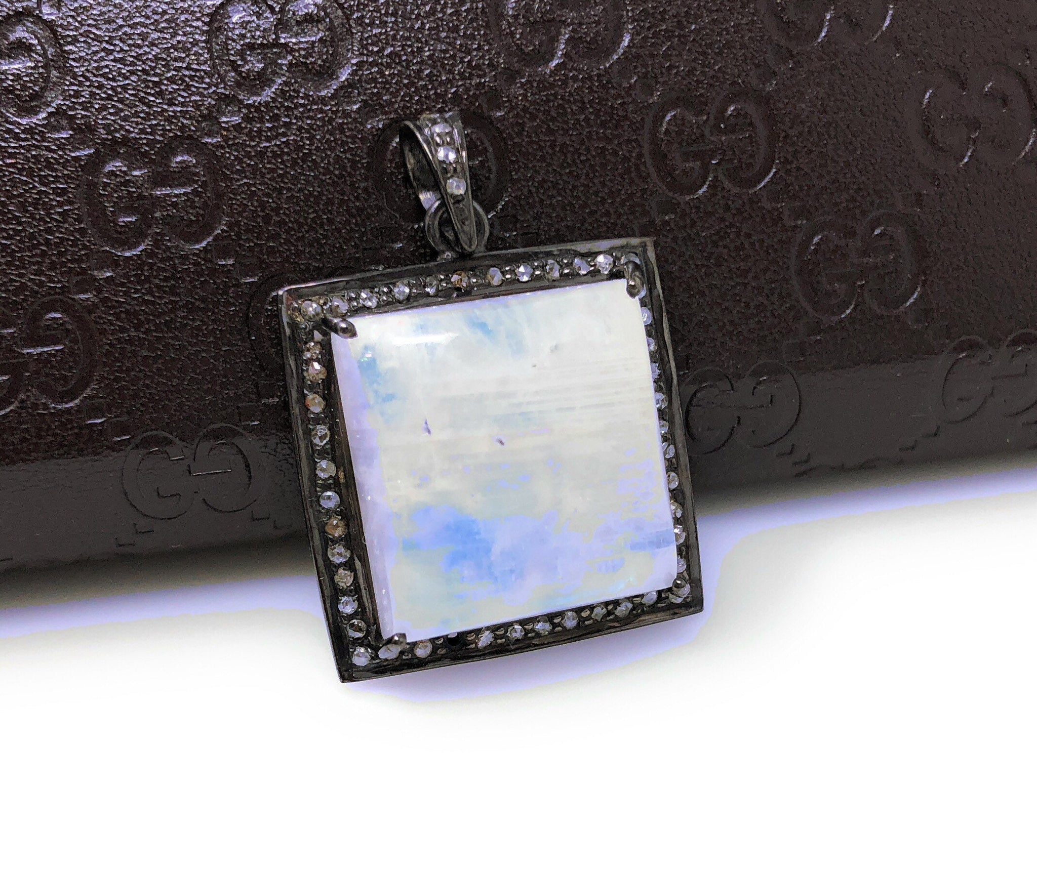 This exclusive beautiful Handmade AAA+ Grade Large Natural Rainbow Moonstone Gemstone Square Shape Oxidized 925 Sterling Silver Pave Diamond Bezel Setting Pendant is an excellent choice for any occasion and makes a great gift for the loved ones.