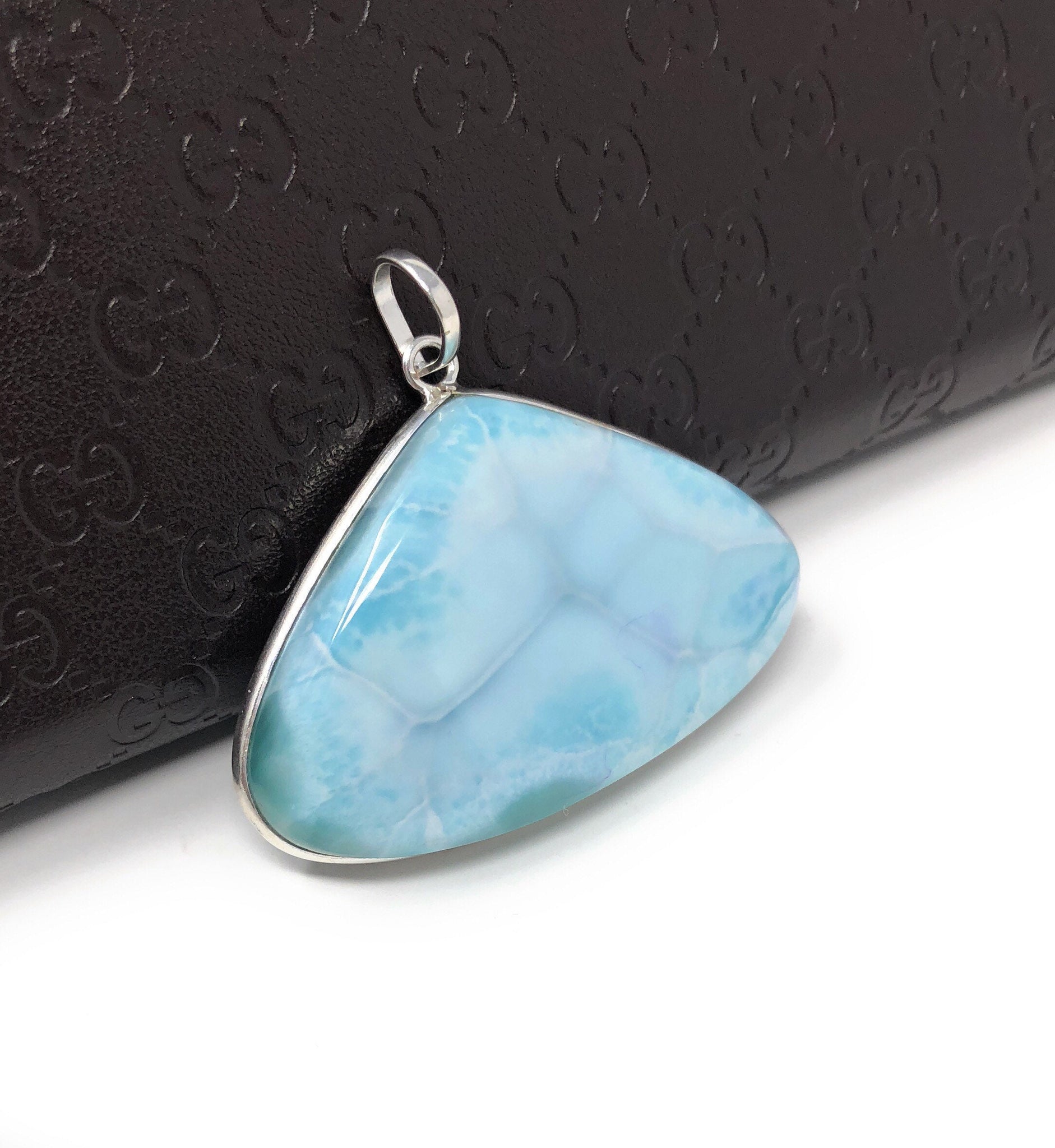 This beautiful Handmade AAA+ Grade Natural Larimar Gemstone Triangle Shape 925 Sterling Silver Large Pendant is an excellent choice for any occasion and makes a great gift for the loved ones.