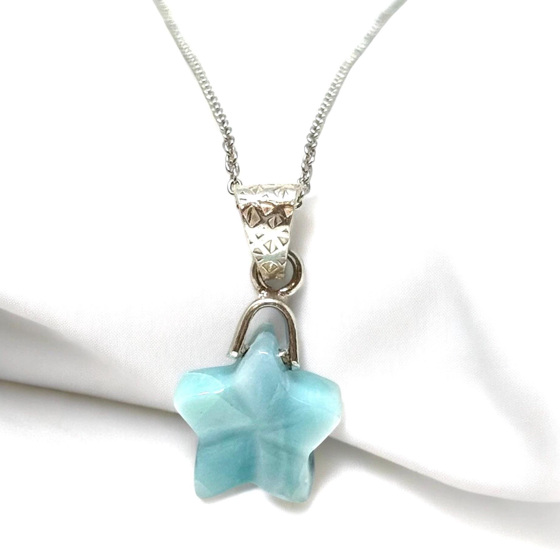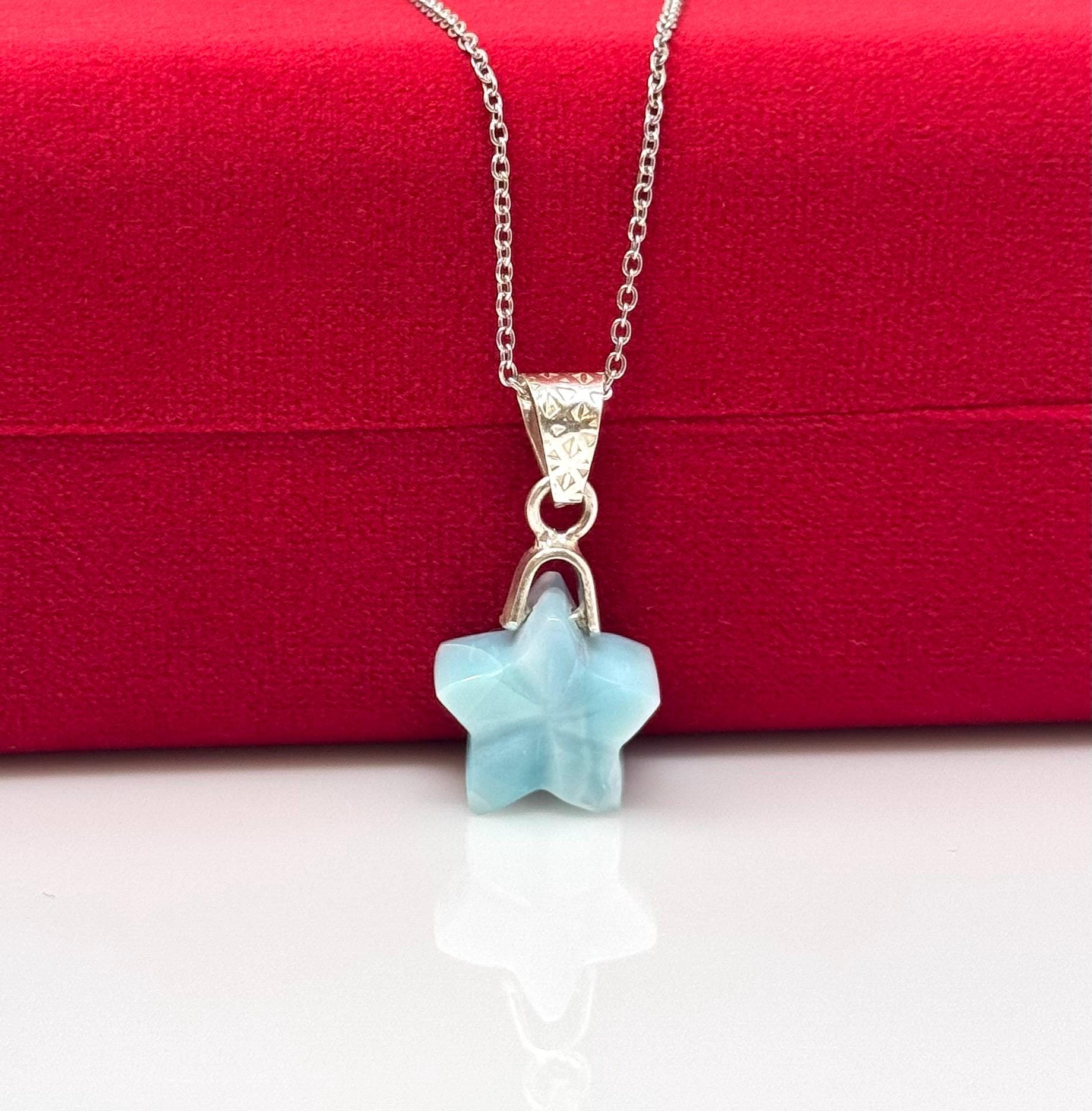 Natural Larimar Gemstone Necklace, Healing Stone, Silver Star Dominican Republic Larimar Jewelry Gifts, 1.25”x0.60”