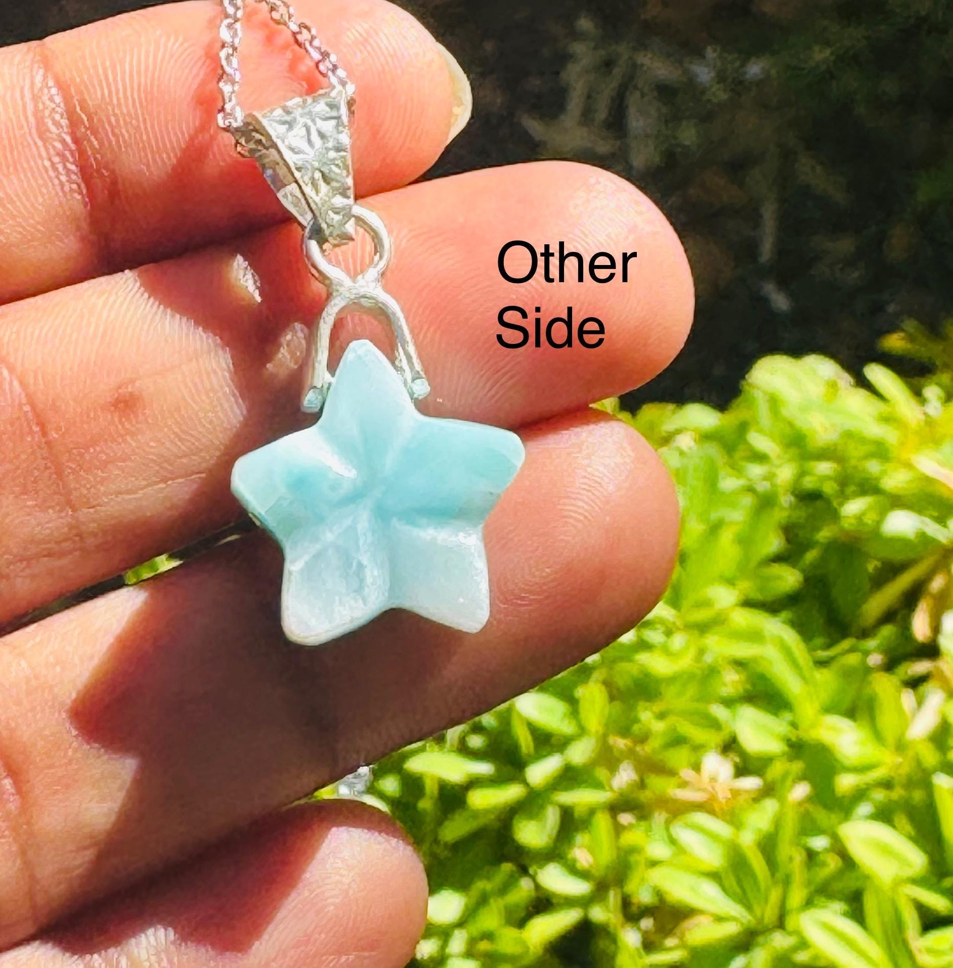 Larimar Star Shape Handmade Gemstone Sterling Pendant Necklace