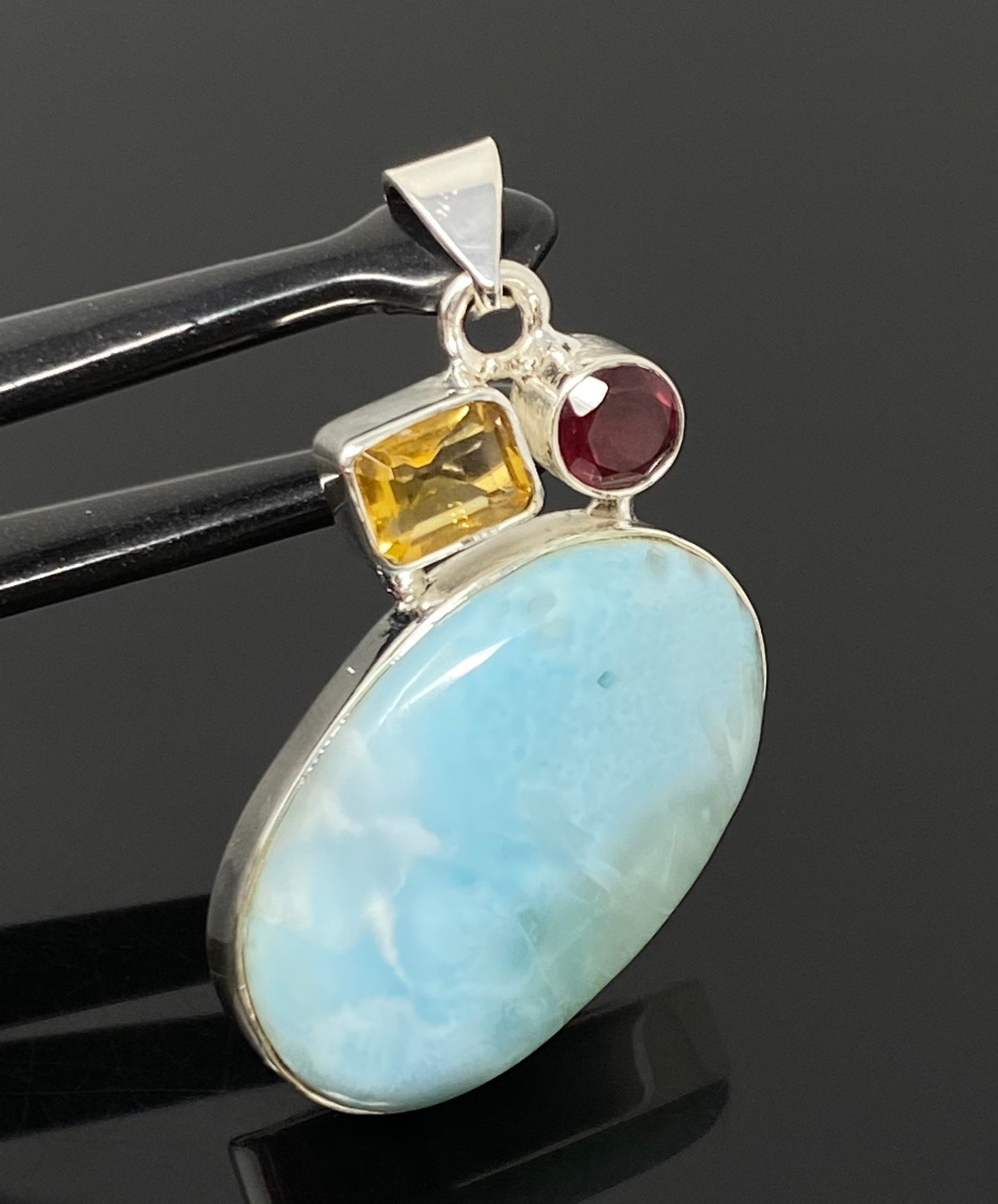 Natural Larimar, Garnet, and Citrine Gemstone Sterling Silver Pendant DIY Jewelry at Wholesale Price.