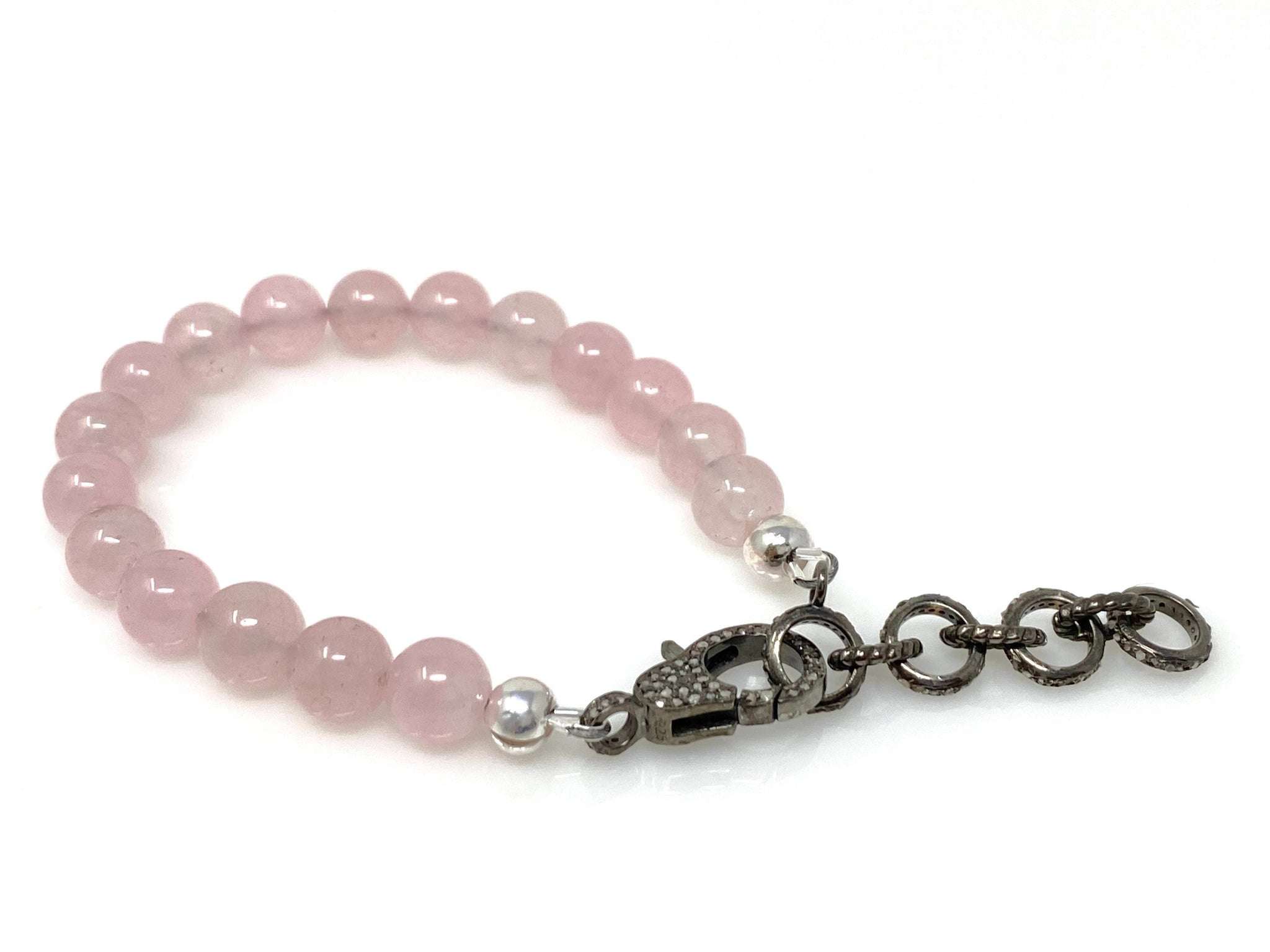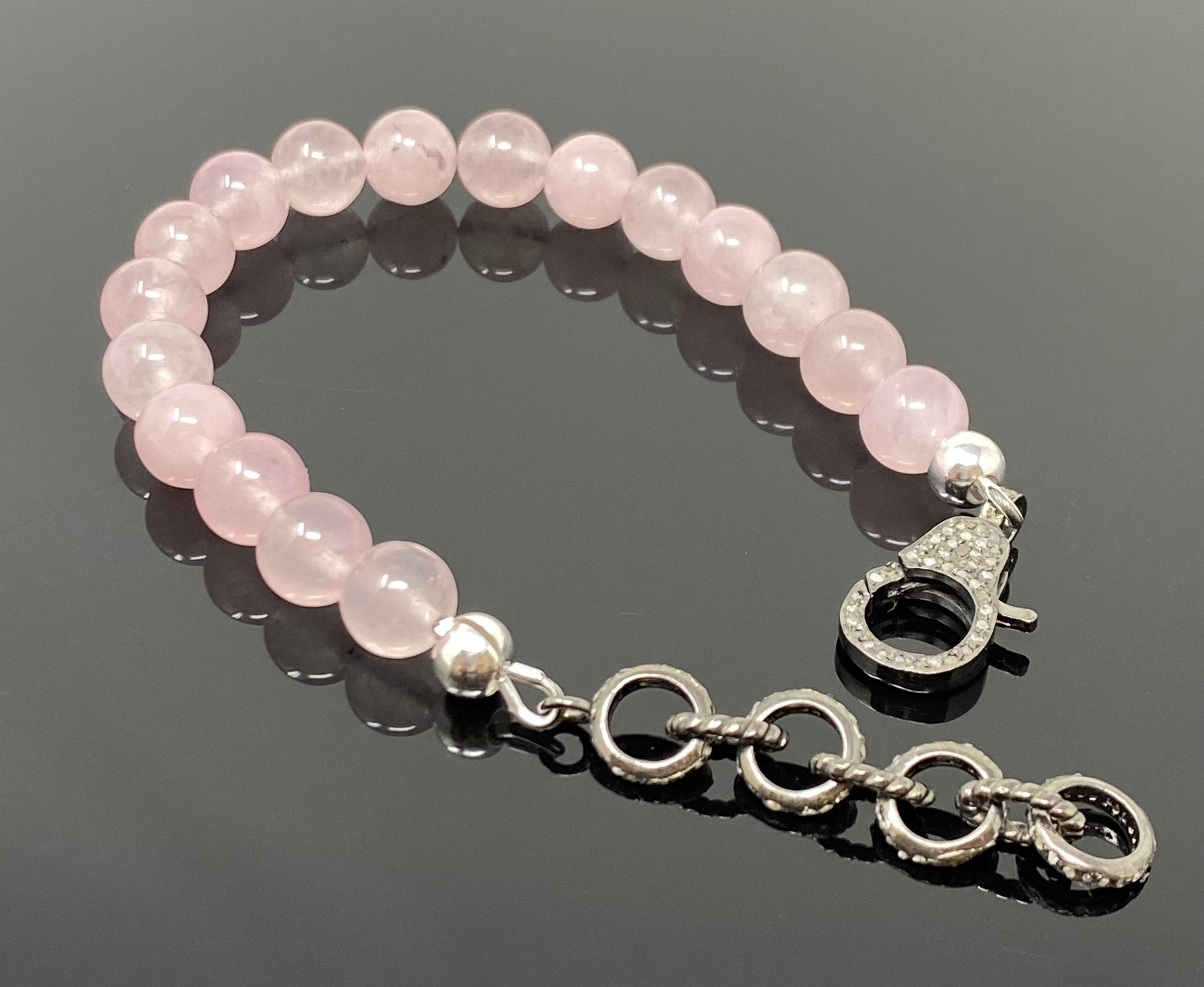 This beautiful Handmade Natural Rose Quartz Gemstone Adjustable Bracelet is made with using Natural Rose Quartz Smooth Beads and Genuine Diamond Clasp with Diamond Extender Links to adjust the bracelet to desired size and is an excellent choice for any occasion and makes a great gift for the loved ones.