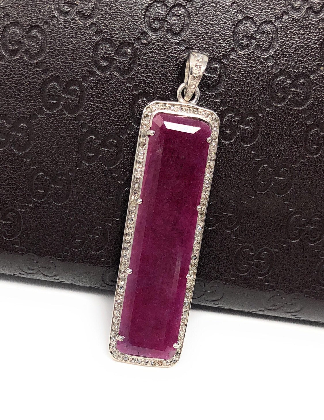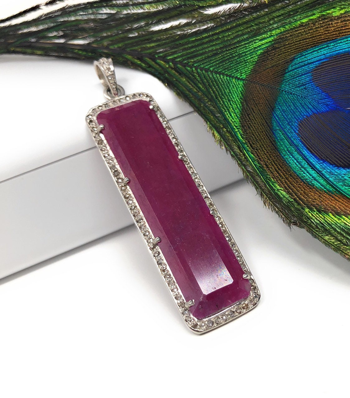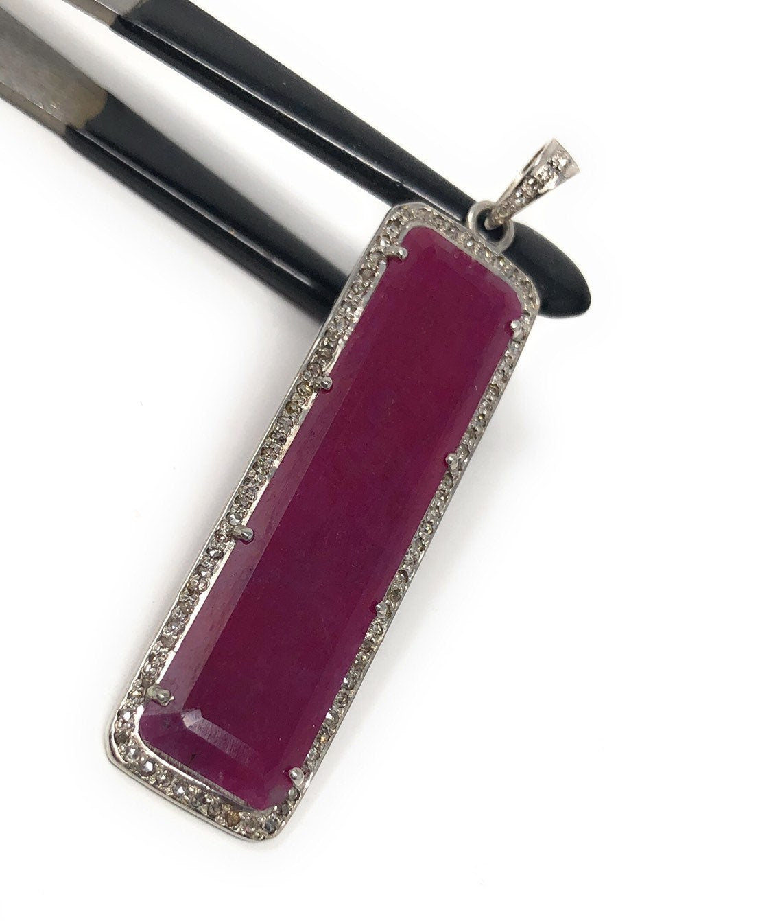 This beautiful Handmade AAA Grade Natural Ruby Gemstone Bar Shape 925 Sterling Silver Pave Diamond Pendant is an excellent choice for any occasion and makes a great gift for the loved ones.
