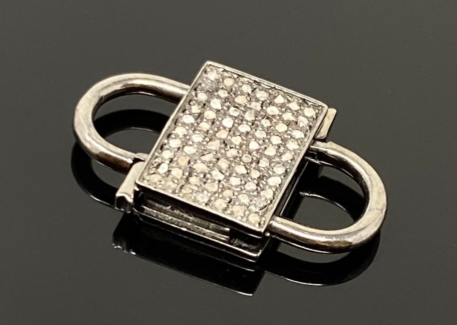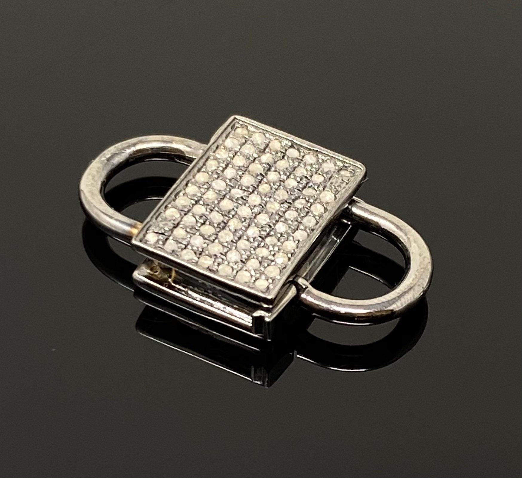 Sterling Silver Pave Diamond Double Sided Clasp Lock for Jewelry Making at Wholesale Price.