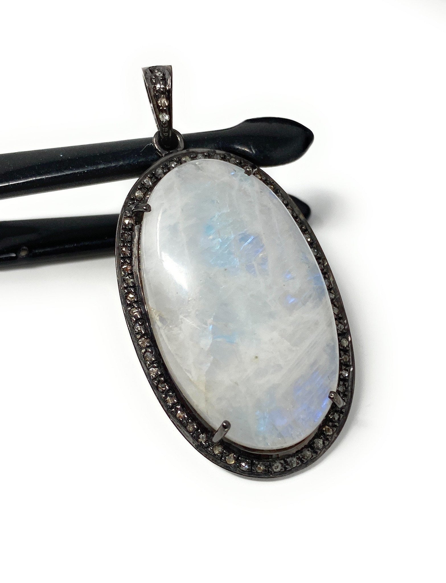 This exclusive beautiful Handmade AAA+ Grade Natural Rainbow Moonstone Gemstone Oval Shape Oxidized 925 Sterling Silver Pave Diamond Bezel Setting Pendant is an excellent choice for any occasion and makes a great gift for the loved ones.