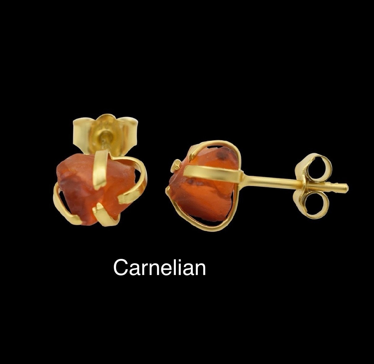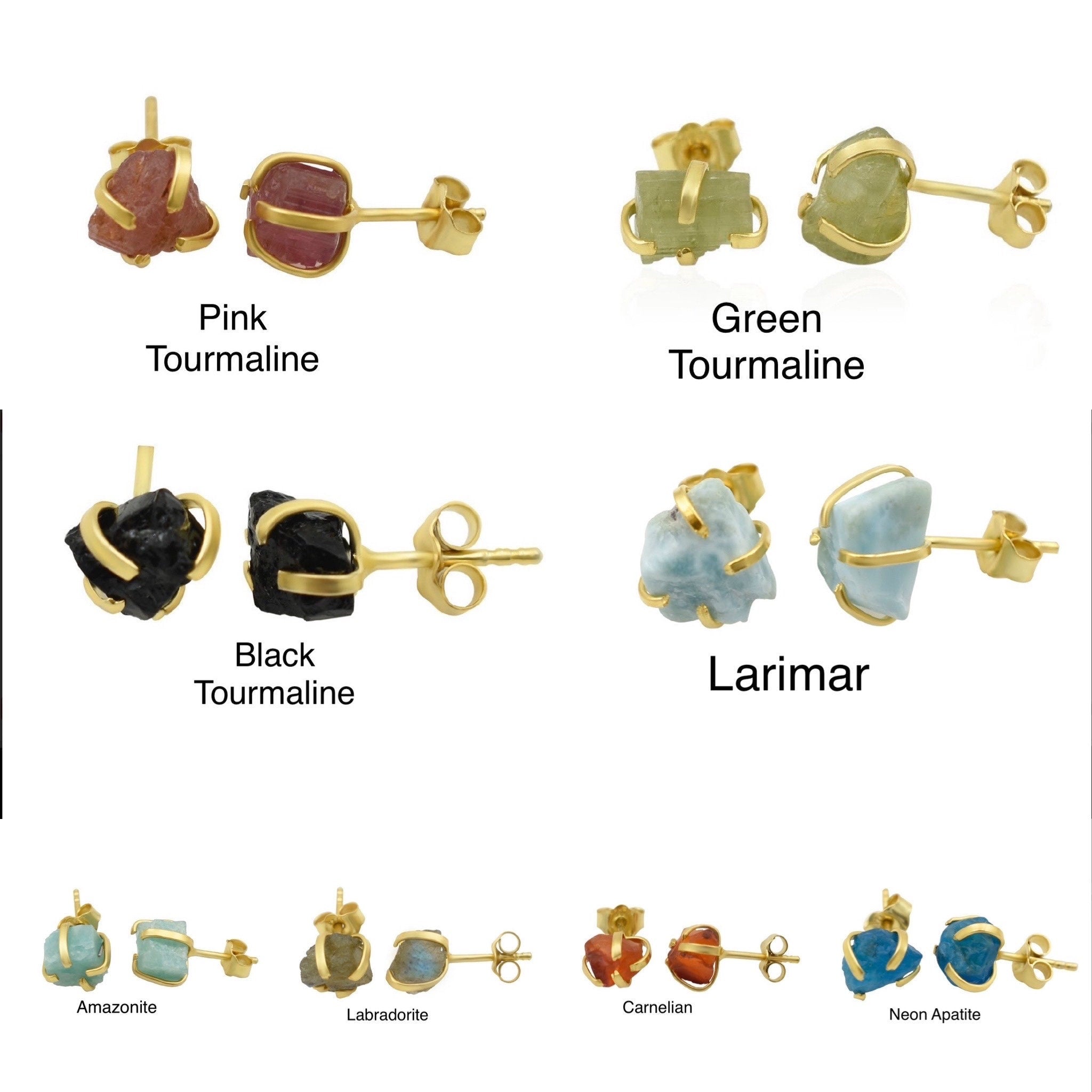 These Natural Rough Handmade Gemstone Stud Earrings are made with raw cut gemstone in a 4 Prong Setting and Gold Plating over Sterling Silver. These makes a perfect gift for the loved ones for any Occassion.