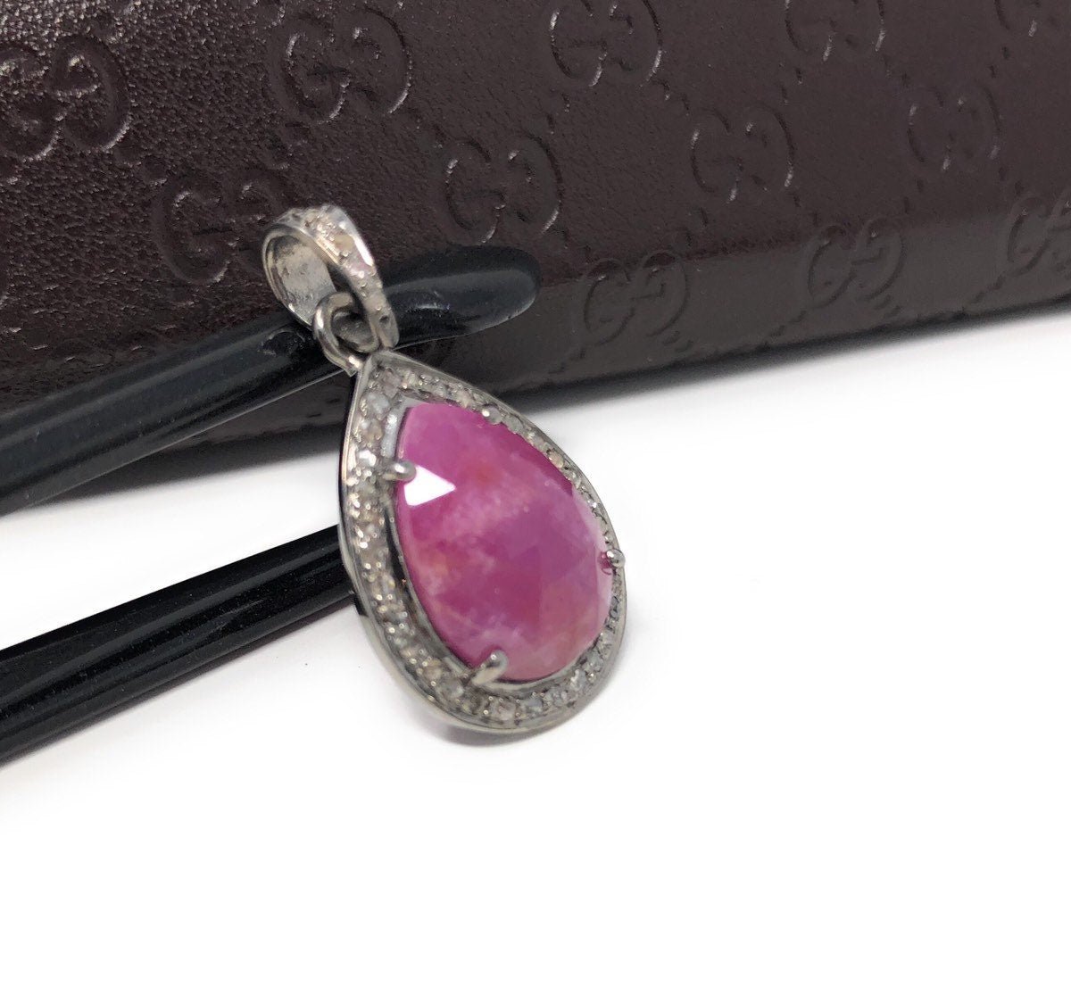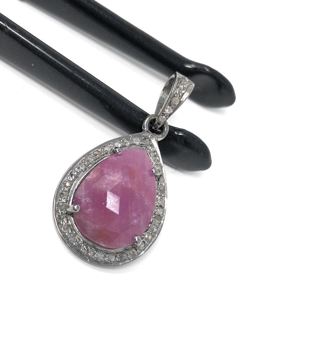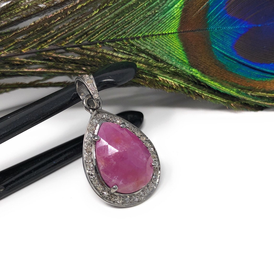 This beautiful Handmade AAA Grade Natural Pink Sapphire Gemstone Drop Shape Oxidized 925 Sterling Silver Pave Diamond Pendant is an excellent choice for any occasion and makes a great gift for the loved ones.