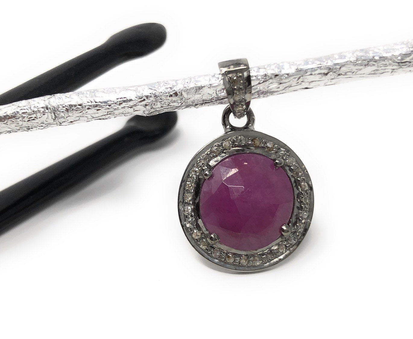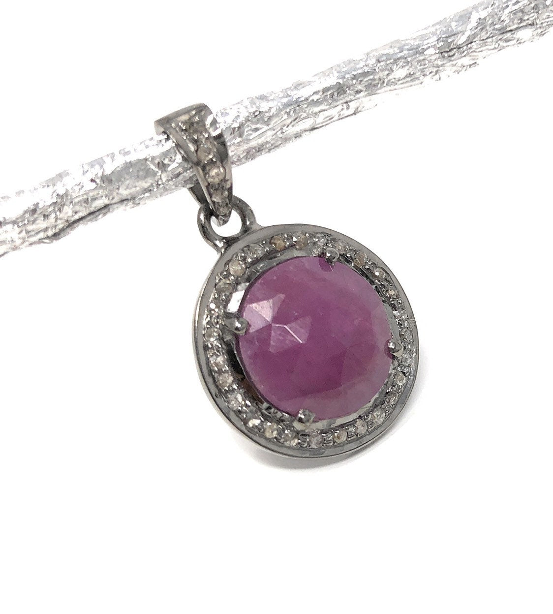This beautiful Handmade AAA Grade Natural Pink Sapphire Gemstone Round Shape Oxidized 925 Sterling Silver Pave Diamond Pendant is an excellent choice for any occasion and makes a great gift for the loved ones.