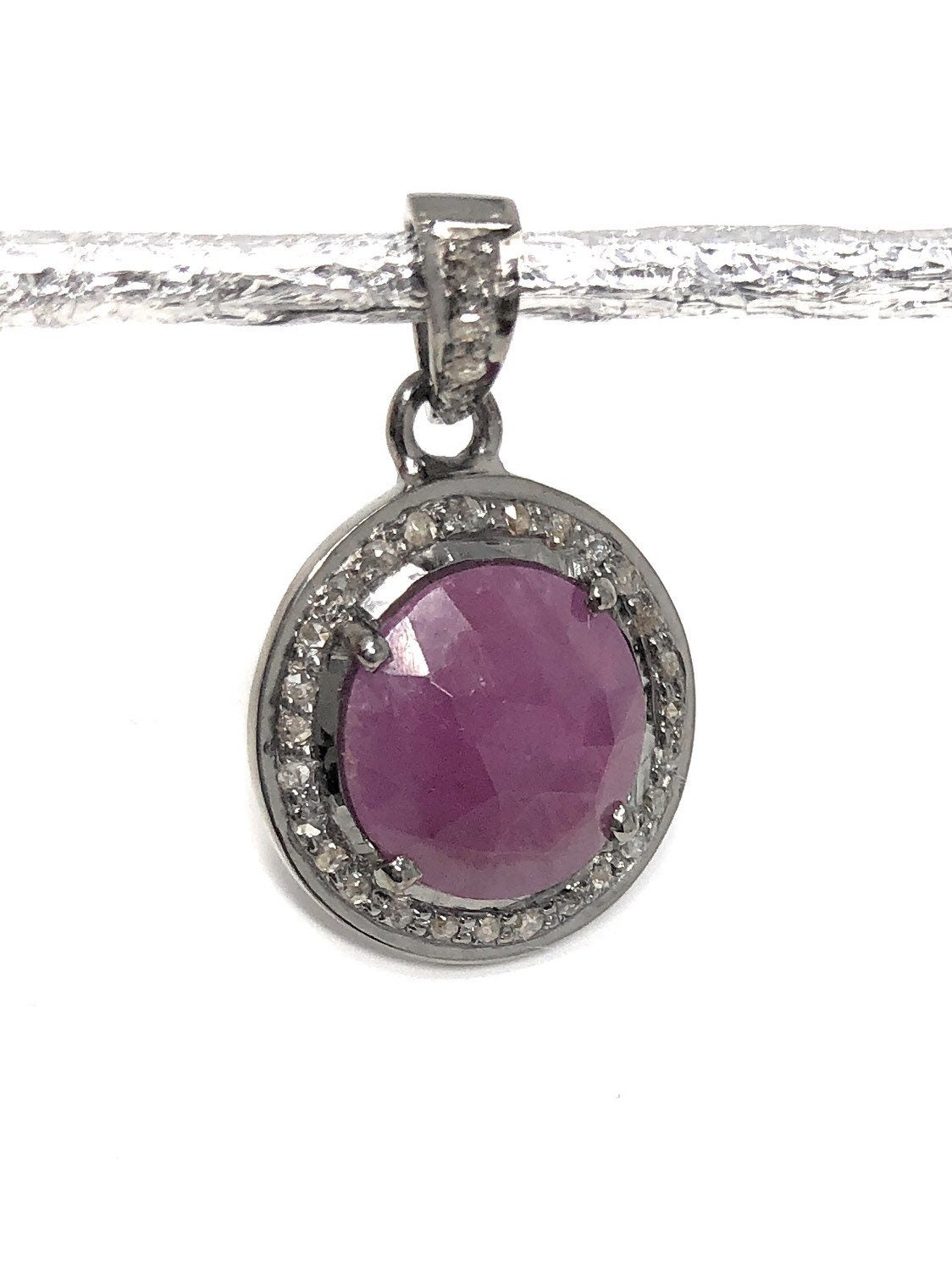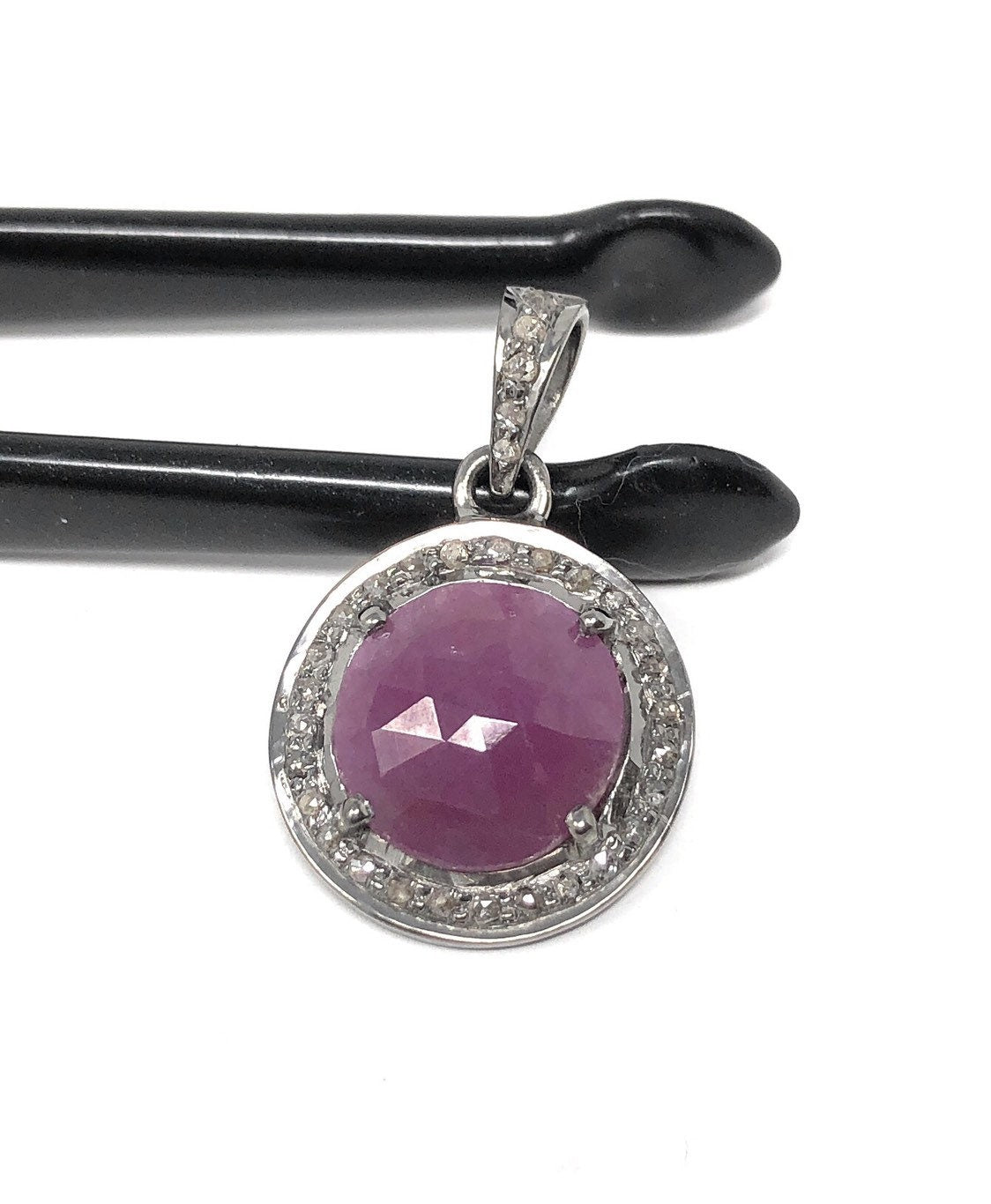 Sterling Silver Natural Gemstone Pink Sapphire Pave Diamond Pendant at Wholesale Price