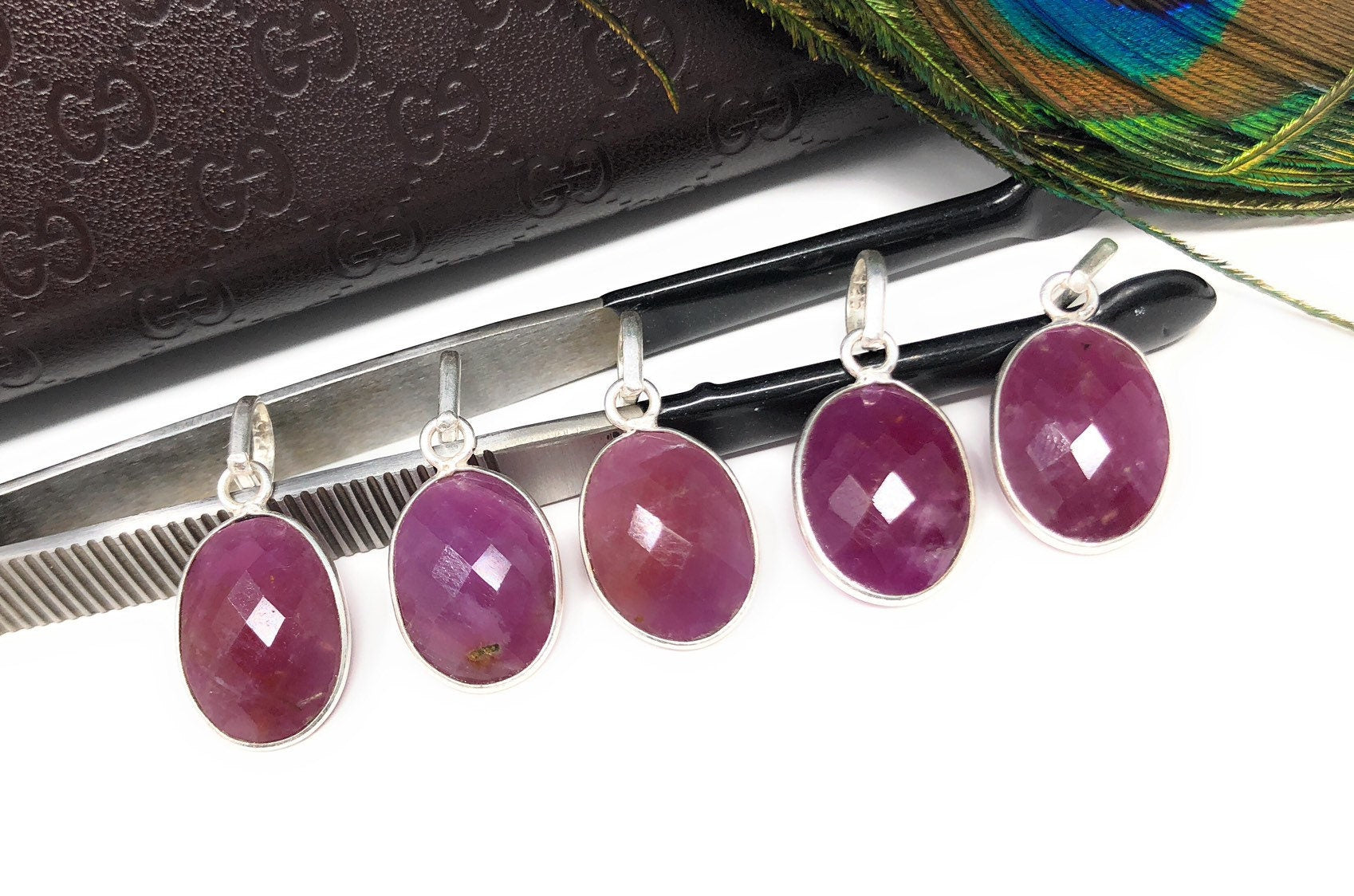 Natural Gemstone Pink Sapphire Pendant Sterling Silver Jewelry Supplies for Jewelry Making at Wholesale Price.