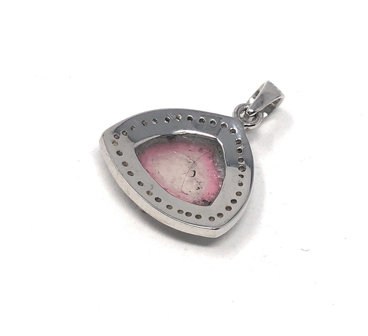 Sterling Silver Natural Watermelon Tourmaline Slice Pave Diamond Pendant at Wholesale Price .