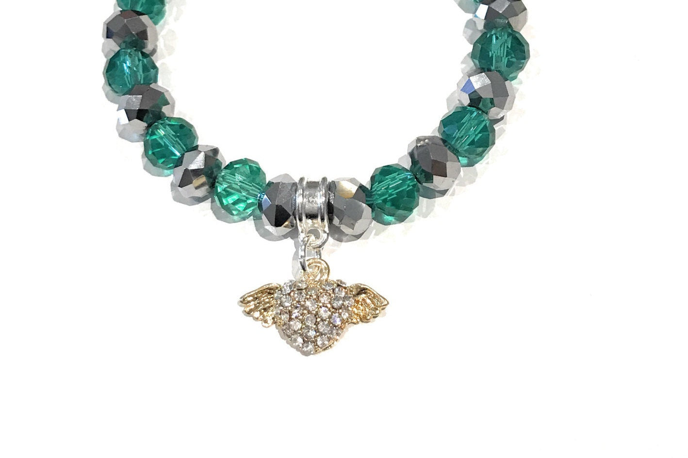. This beautiful handmade bracelet is made with gold plated angel wing charm studded with