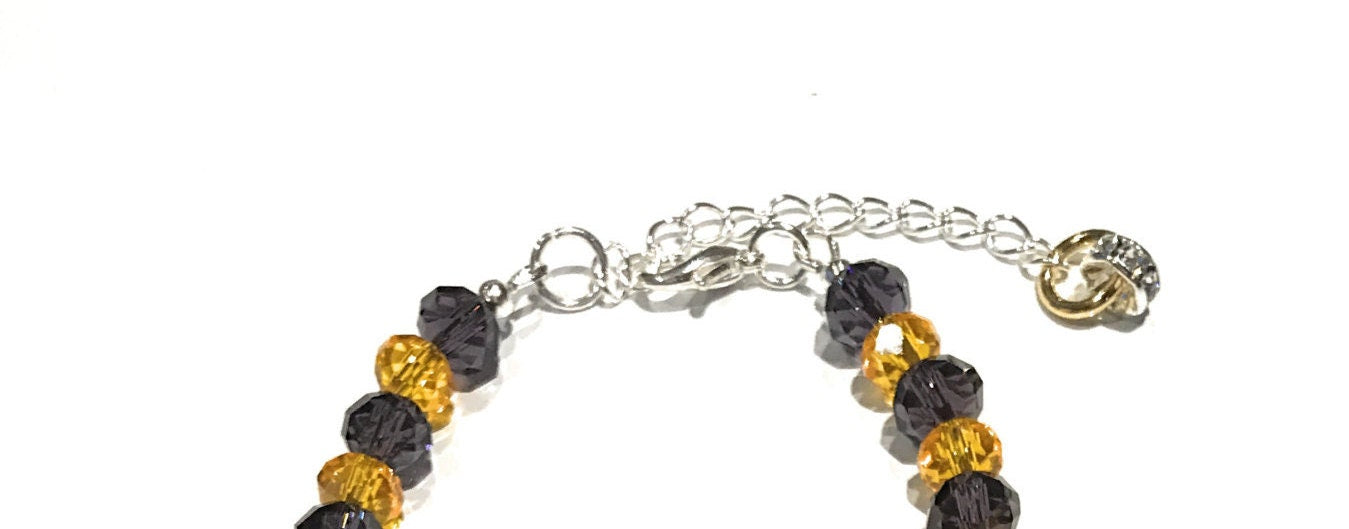 . Faceted Glass Beads in Yellow and Dark Lavender Color.