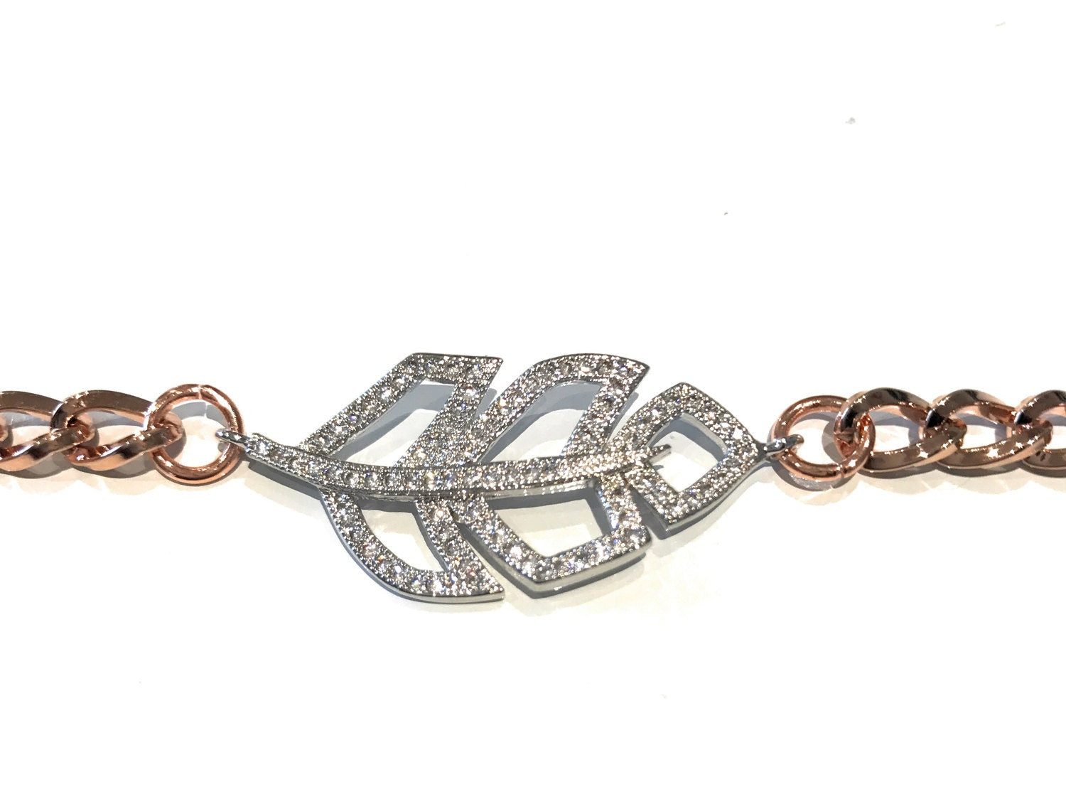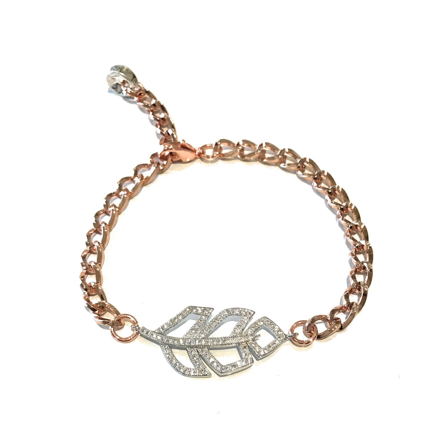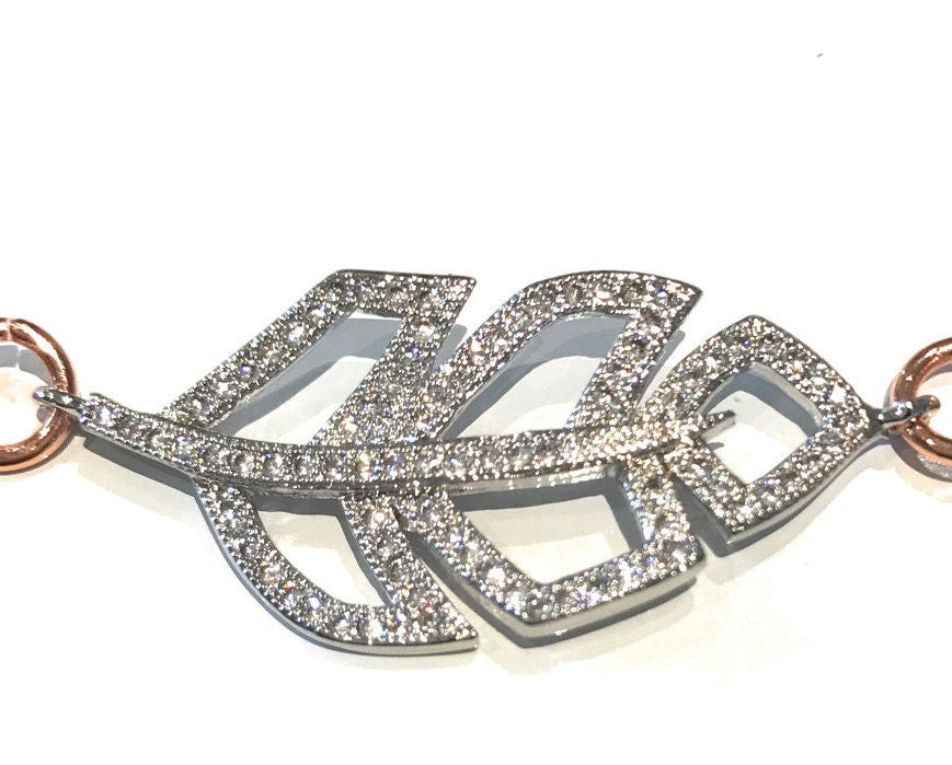 Rose Gold Bracelet, Leaf Bracelet, Pave Bracelet, Rosegold Jewelry, Birthday Gift, Gifts for Her, Silver Bracelet, Nature Jewelry, Rose Gold