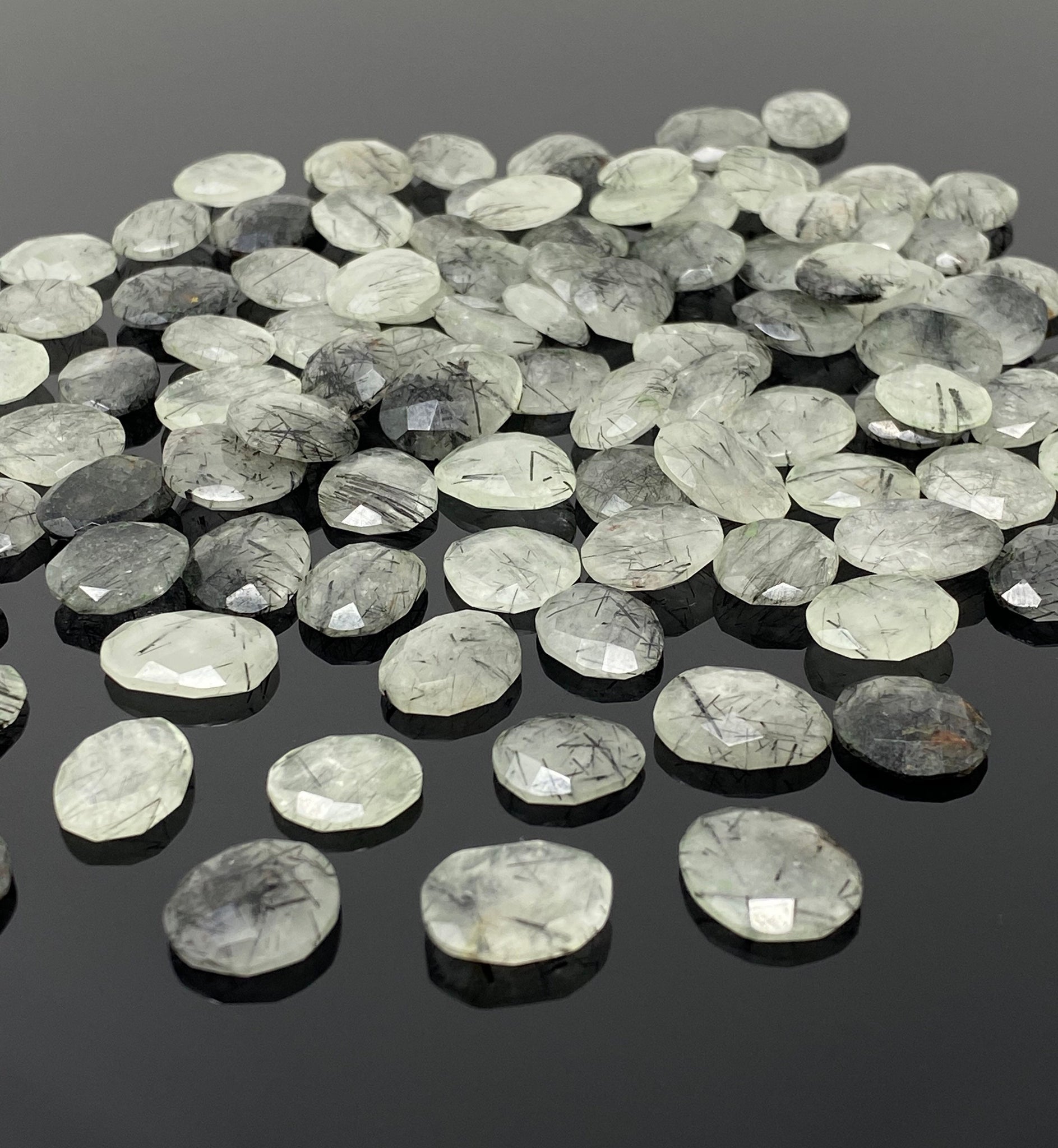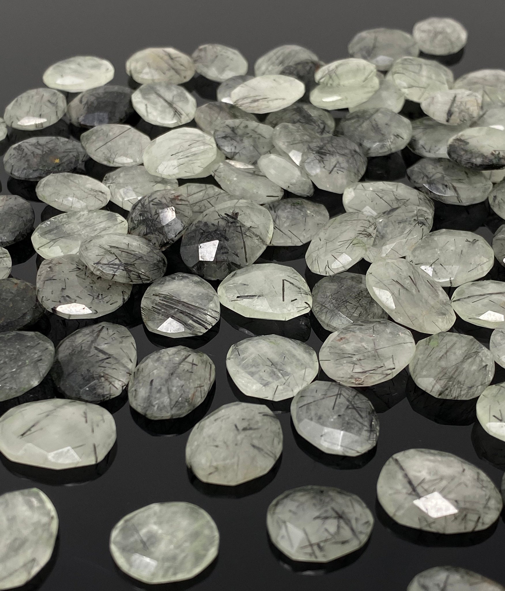 10 Pcs Natural Black Rutile Rose Cut Cabochons, Loose Gemstones, Ring Stones, 13x10mm - 17x13mm