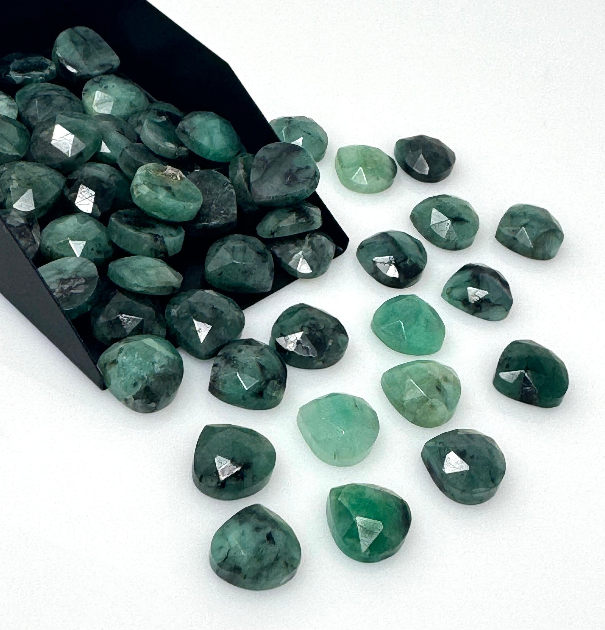 10Pcs/12Pcs Emerald Rosecut Loose Gemstone Cabochons , Natural Emerald Ring Stones Bulk Wholesale DIY Jewelry Making Supplies, 10mm