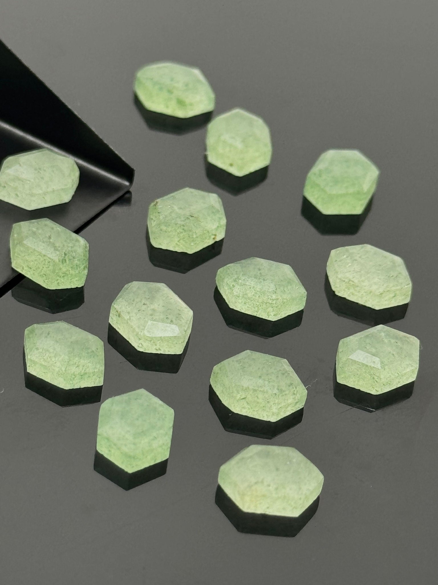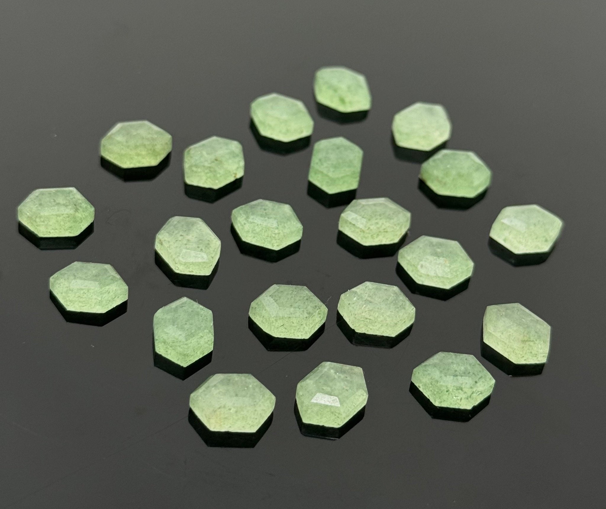 11 Pcs Green Strawberry Quartz Rosecut Gemstones Cabochons , Green Strawberry Quartz Rose Cuts Ring Stones Jewelry Making Supplies, 10x7mm
