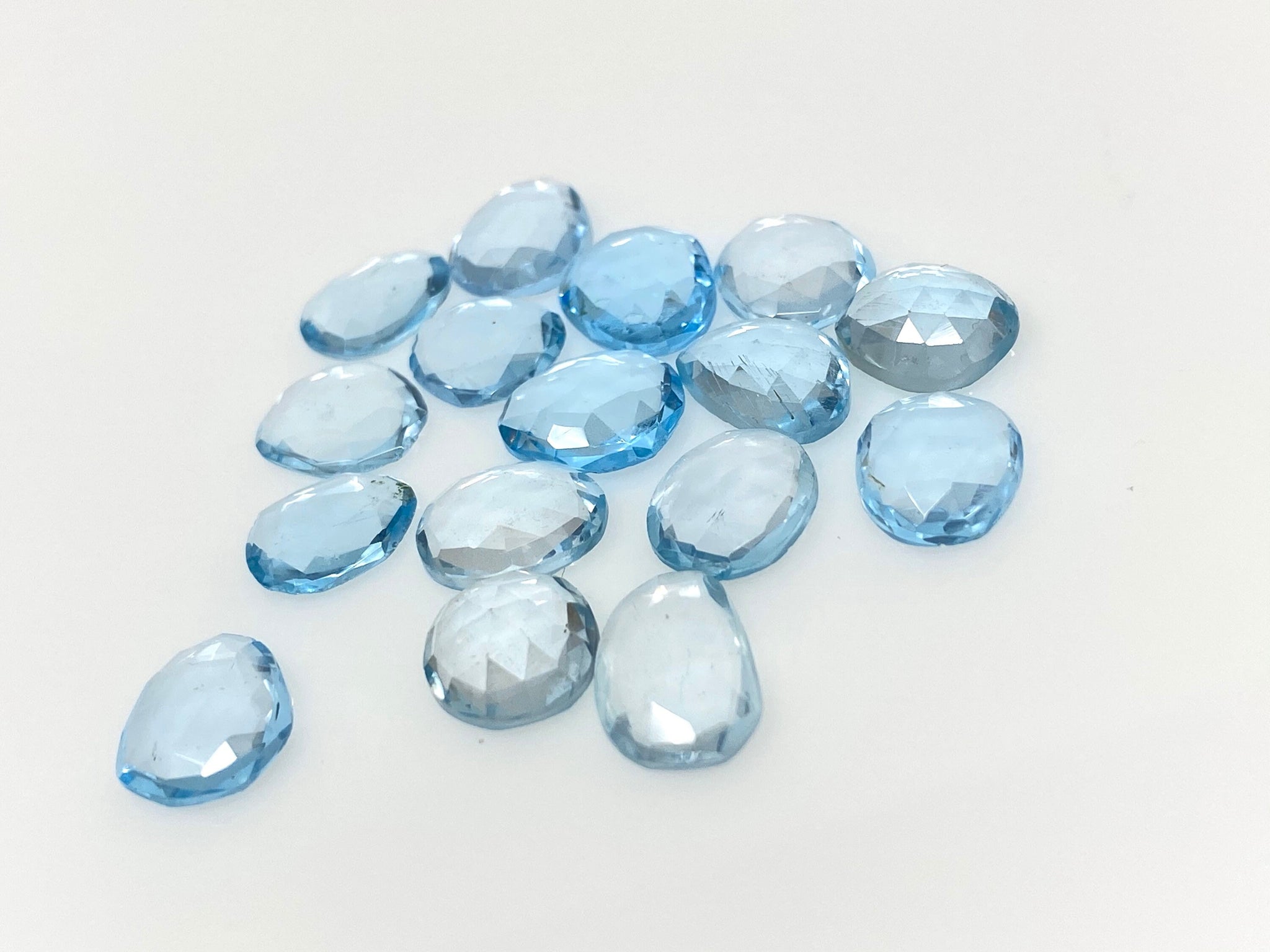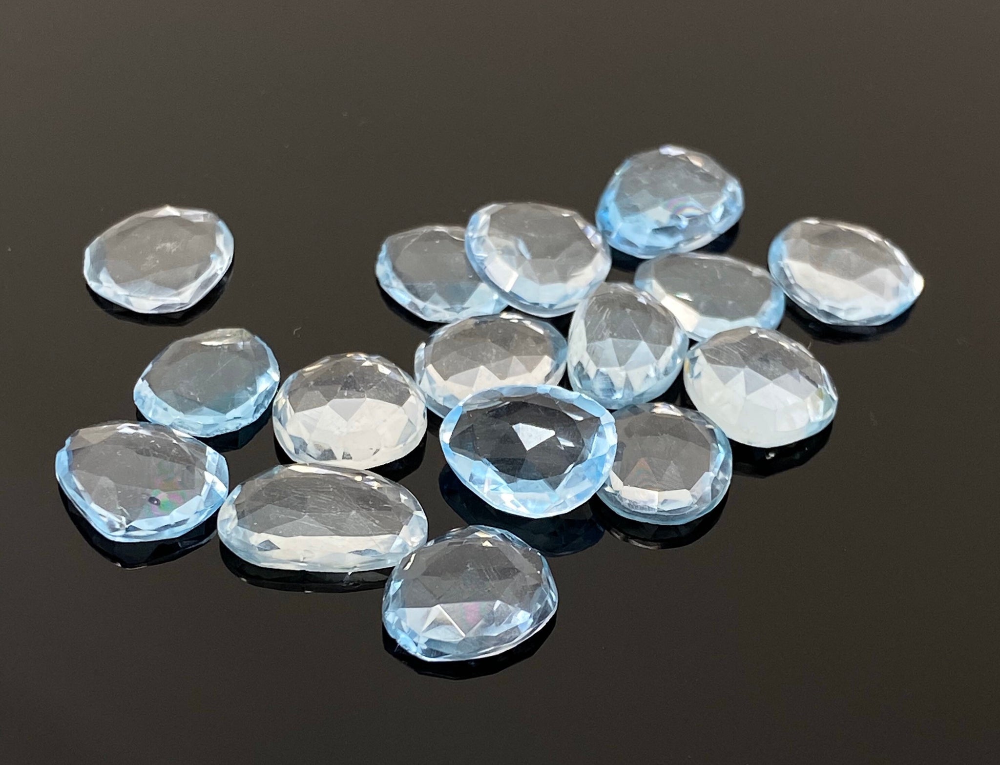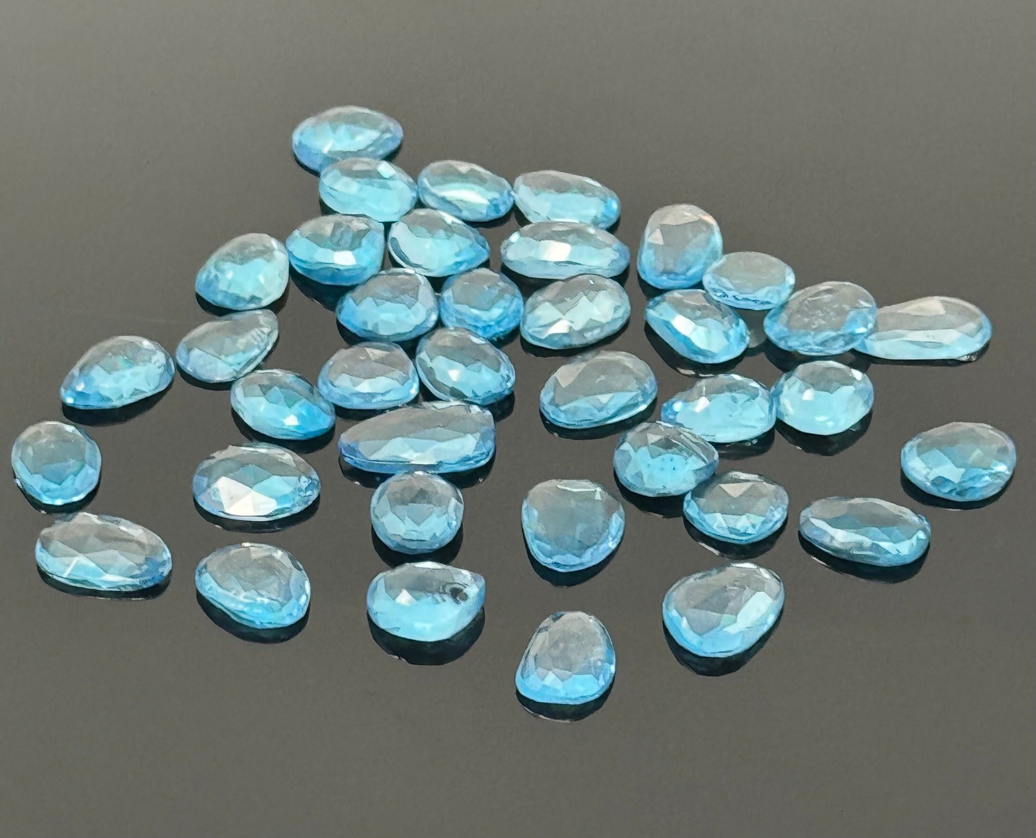 6Pcs Swiss Blue Topaz Rosecut Cabochons, Loose Gemstones, Blue Topaz Rose Cuts, 8x7mm - 12x9mm