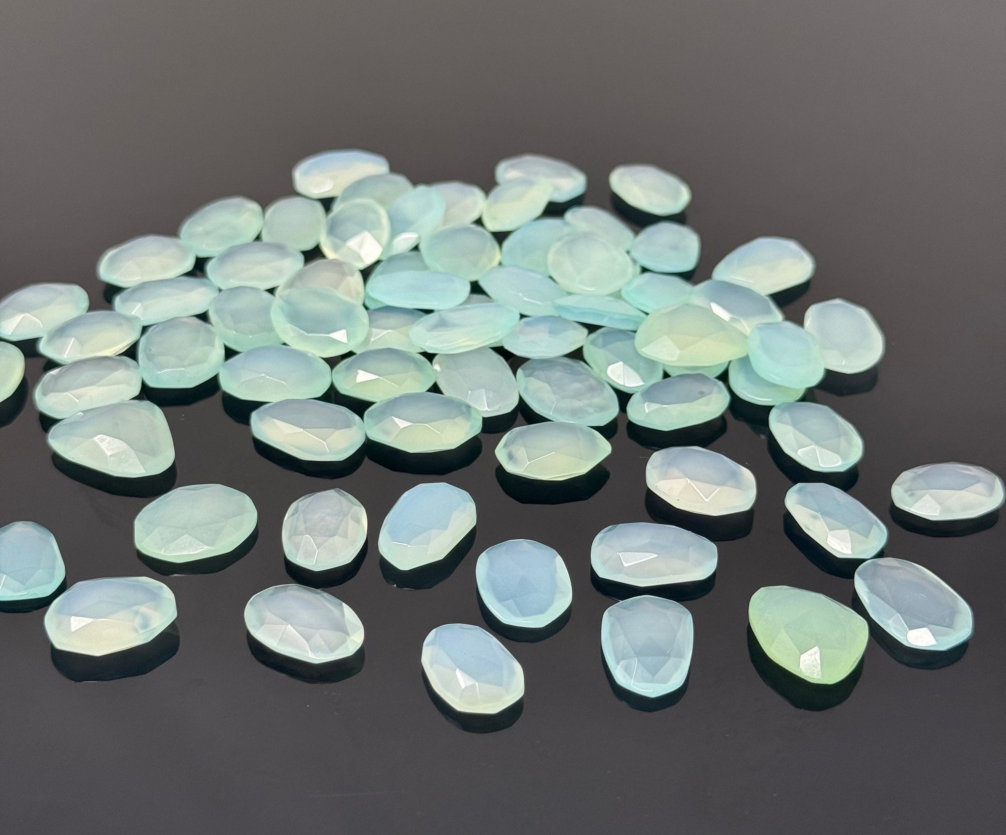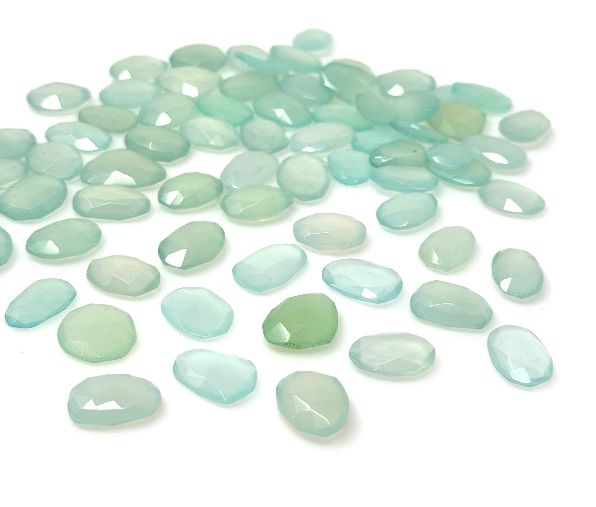 9Pcs / 10 Pcs Aqua Chalcedony Rosecut Cabochons, Loose Gemstones, Aqua Chalcedony Rose Cuts, 10x8mm - 17x15mm
