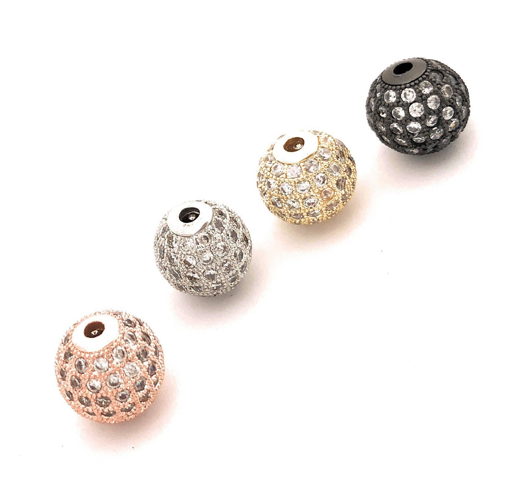 12mm Shamballa Beads, Spacer Beads, Pave Beads, CZ Micro Pave Beads, Gold Pave Beads, Silver Pave Beads, Rose Gold Beads, Jewelry Supplies,