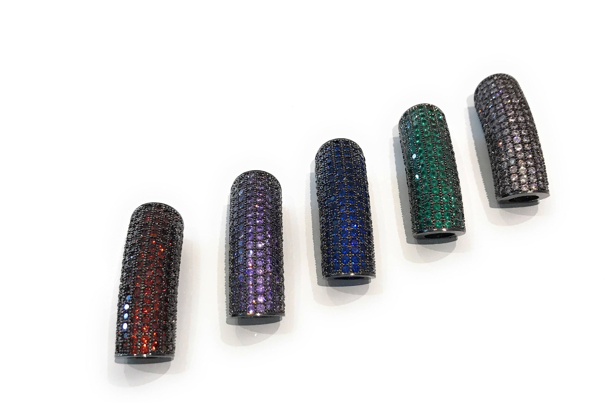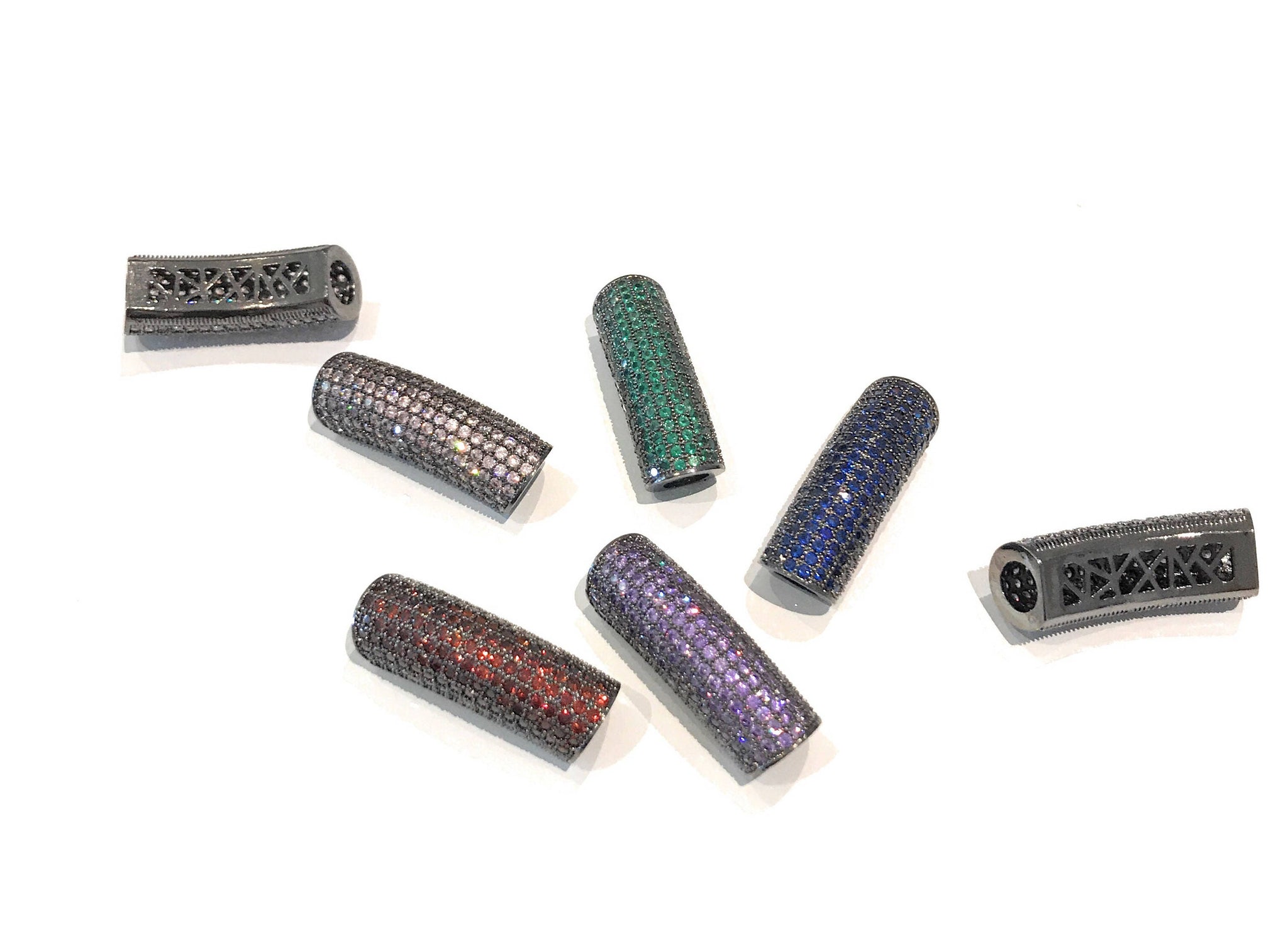 CZ Micro Pave Slider Curved Tube Beads in Fancy Colors with Gun Metal Plated Base for Jewelry Making at Wholesale Price.