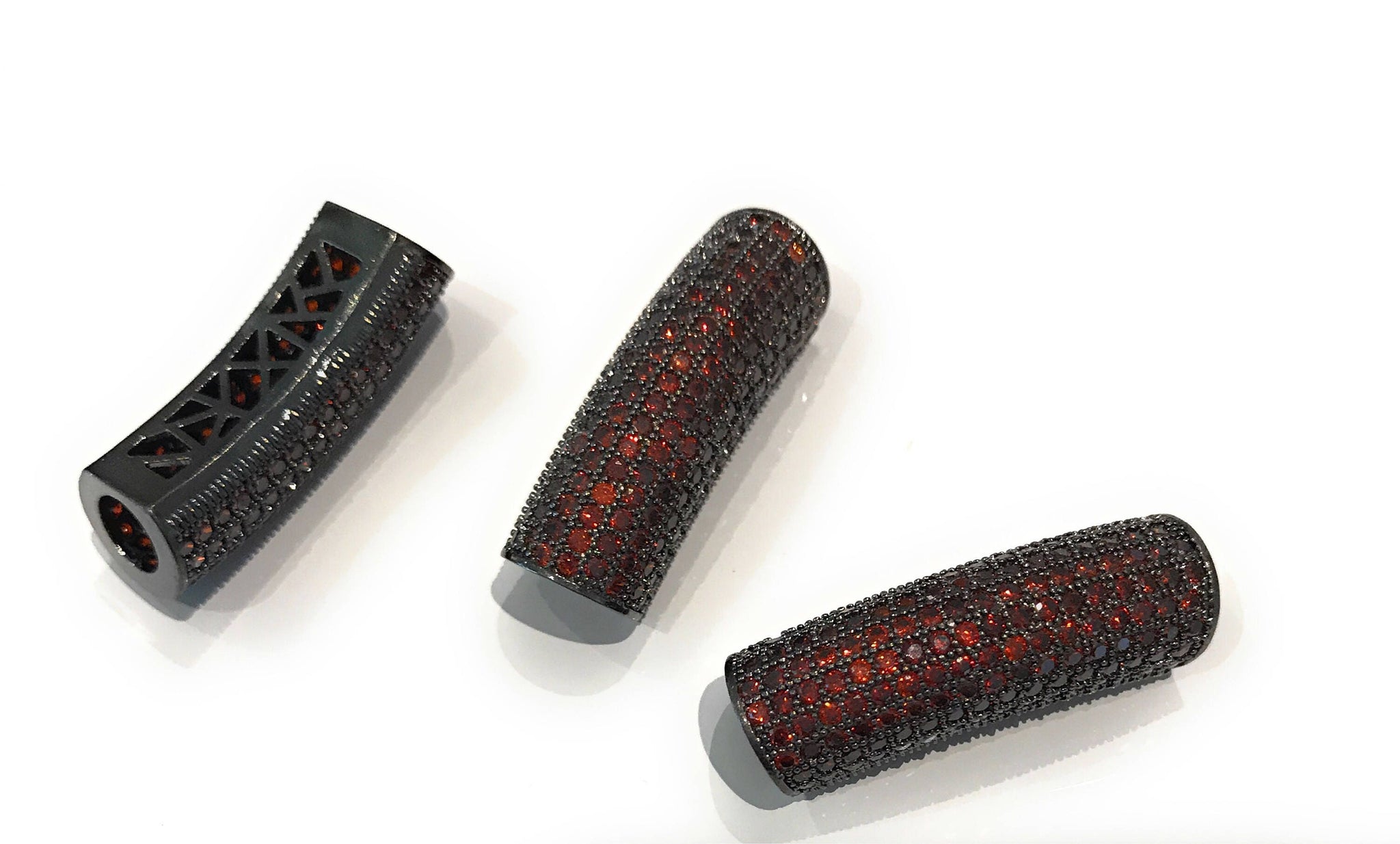 This Gun Metal Plated Micro Pave Cubic Zirconia Curved Tube Bead is an excellent choice for making any Jewelry Design. It can be used as a connector for a bracelet or as Connector Tube Bead in a Necklace.
