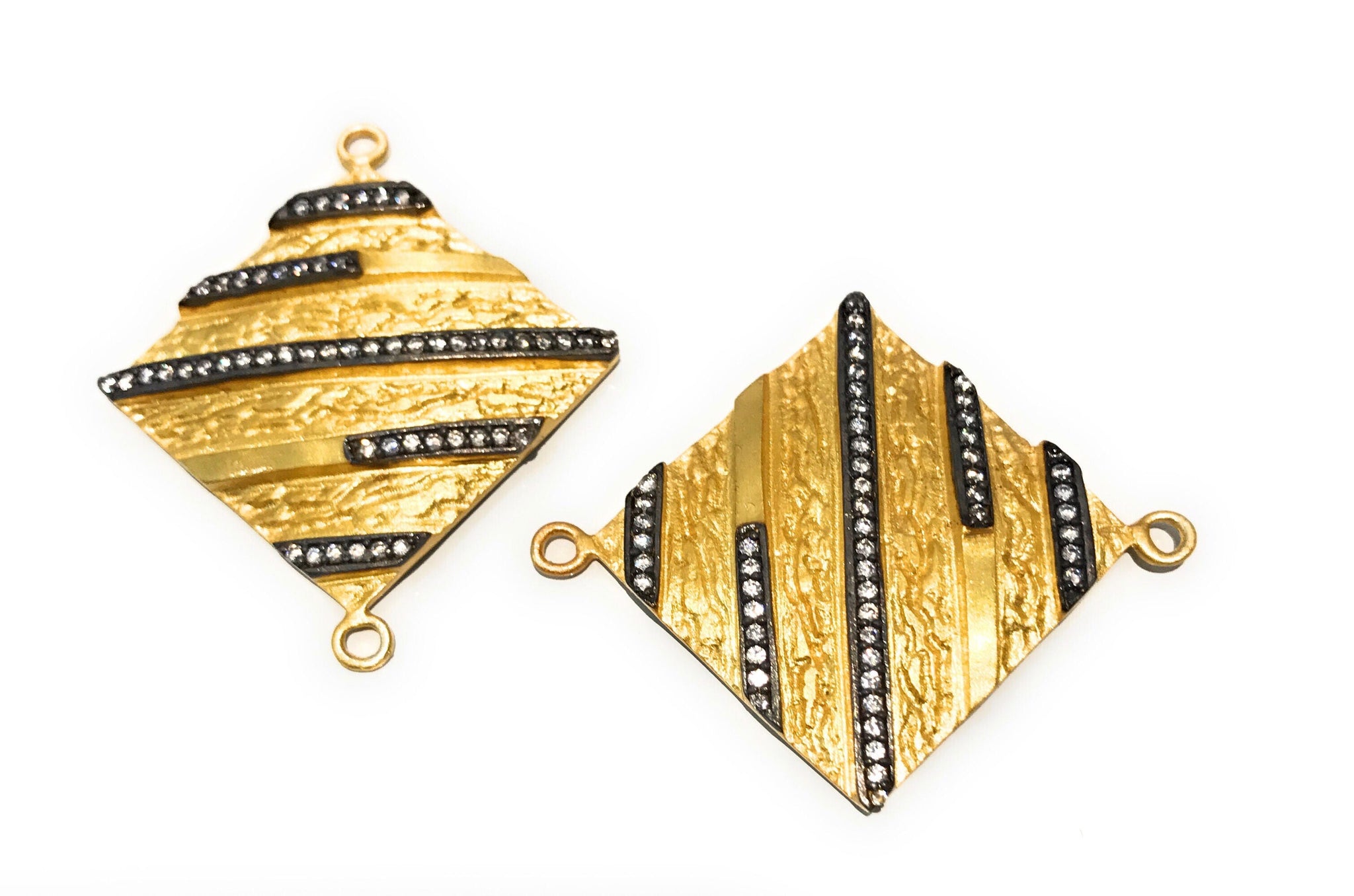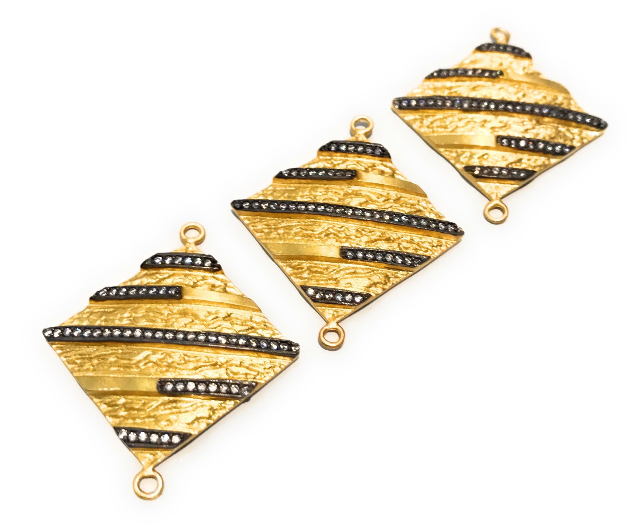 Gold Large CZ Diamond Shape Charm Connector Jewelry Findings for Jewelry Making at Wholesale Price.