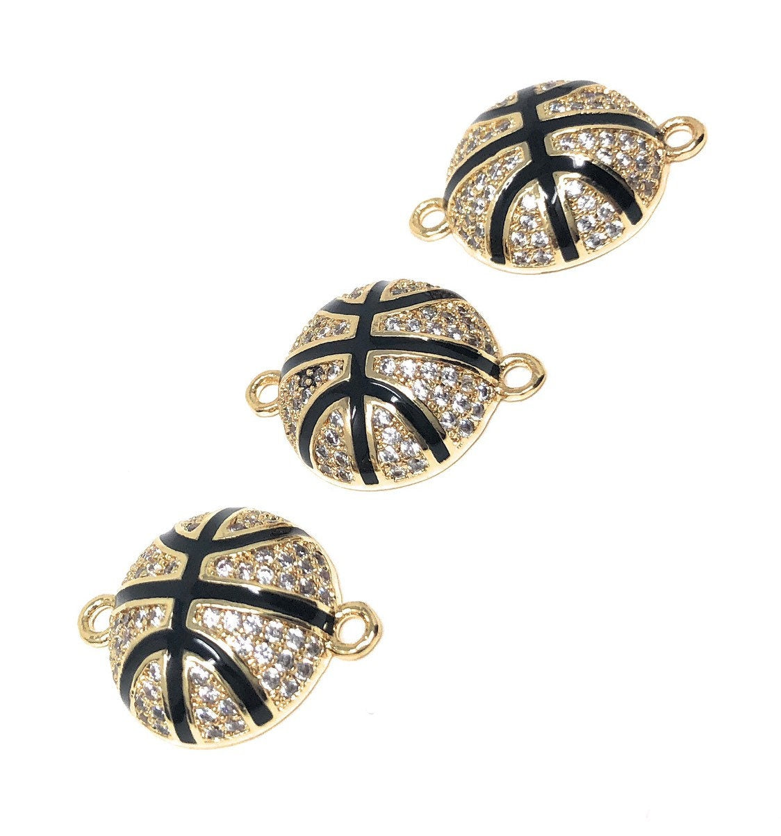 CZ Micro Pave Basketball Charm Connector Link Jewelry Findings for Jewelry Making at Wholesale Price.
