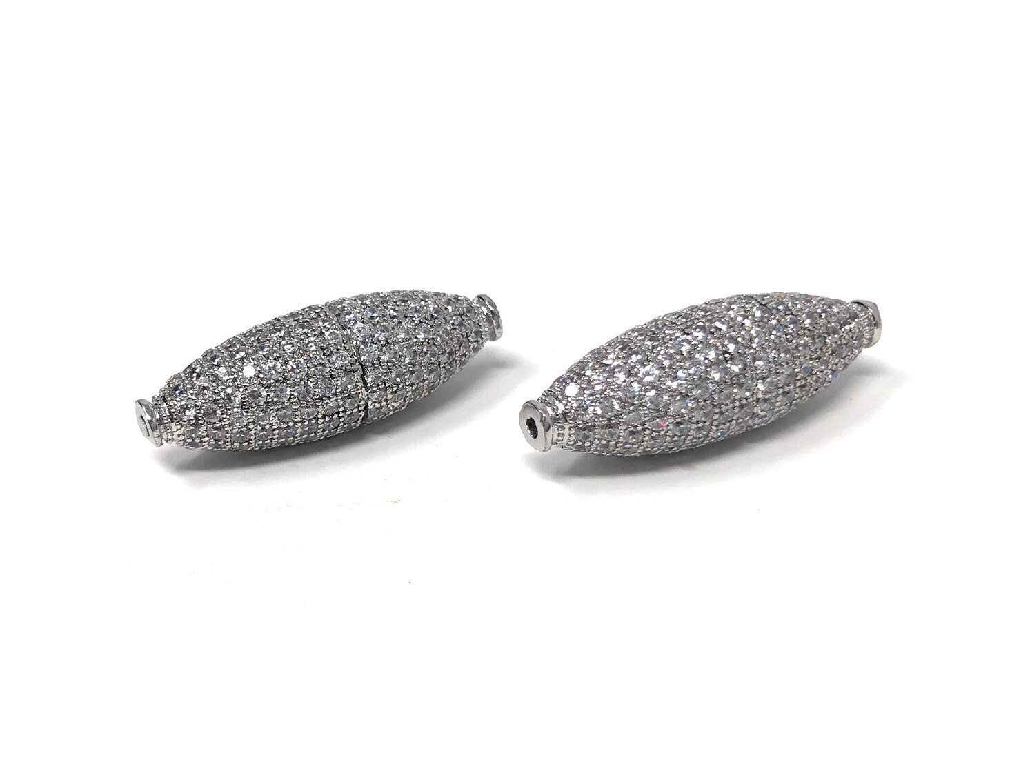 CZ Micro Pave Beads, Spacer Beads, Jewelry Supplies, Jewelry Findings for DIY Jewelry Making, Football Pave Beads, 29mm X 10mm, 1 Pc