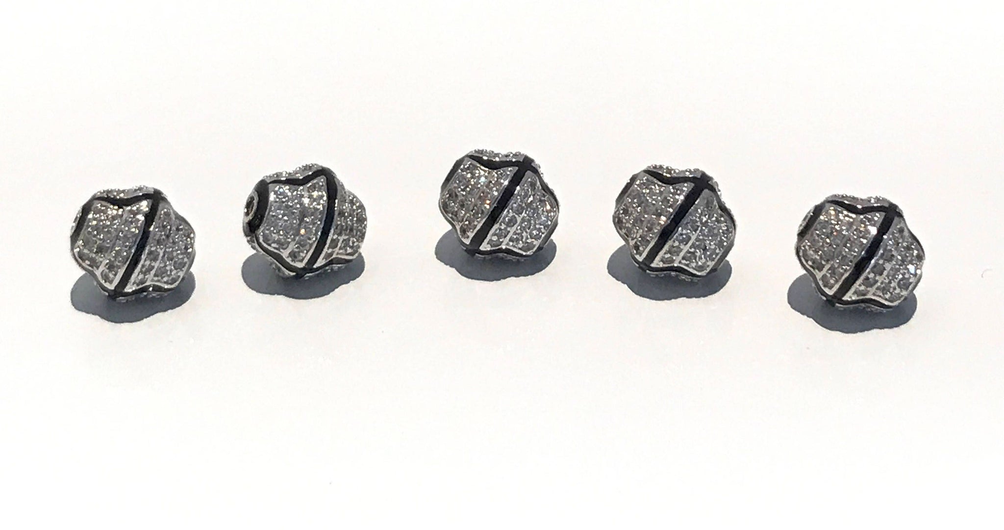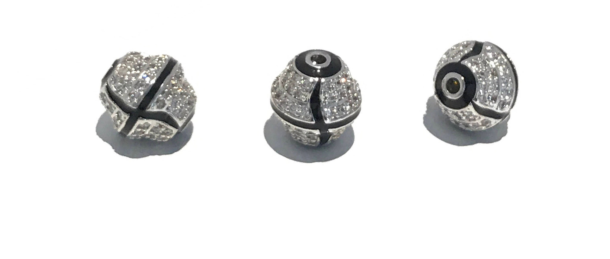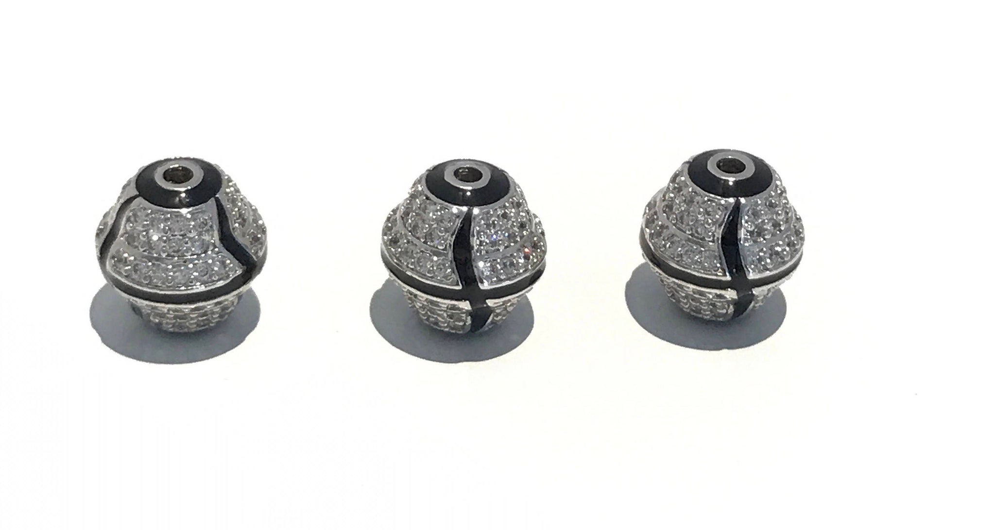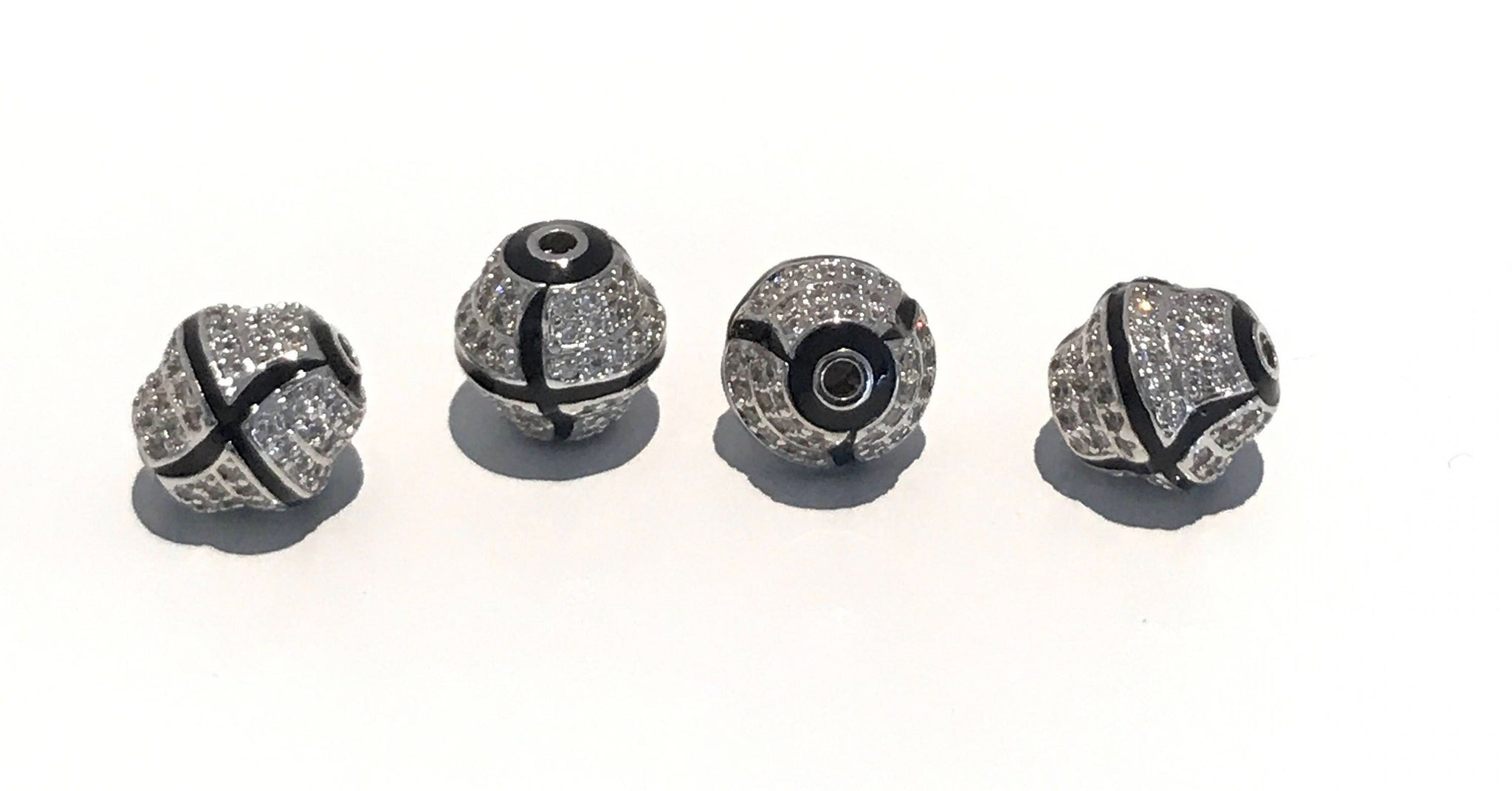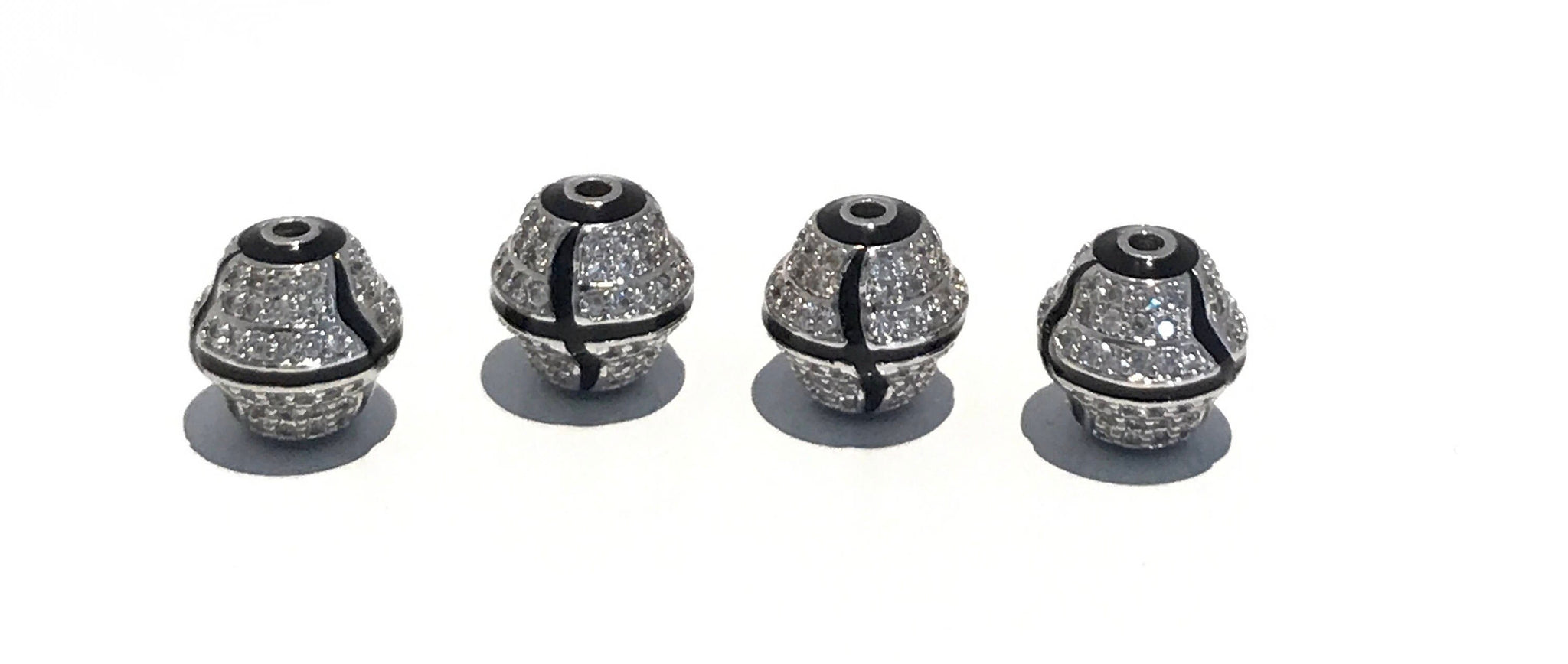 Bicone Shape CZ Platinum Plated Micro Pave Beads with Black Enamel for Jewelry Making.