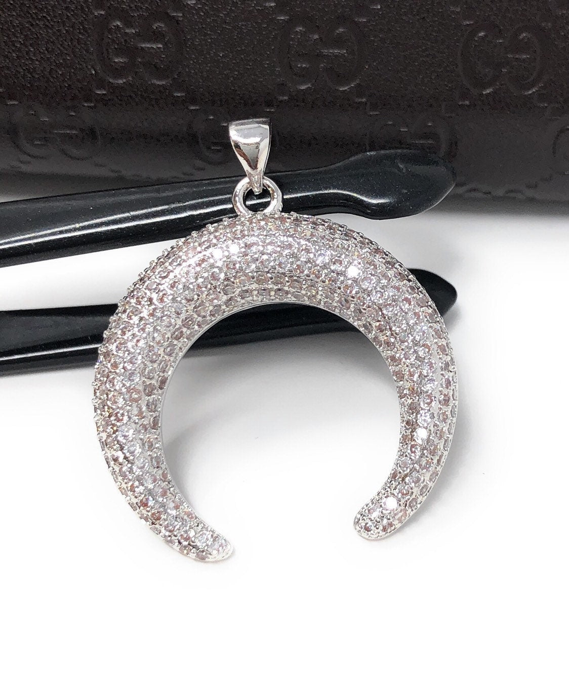 This Beautiful CZ Micro Double Horn/ Moon Crescent Pendant is a great purchase for making Necklace and can give any chain an exquisite yet trendy look.