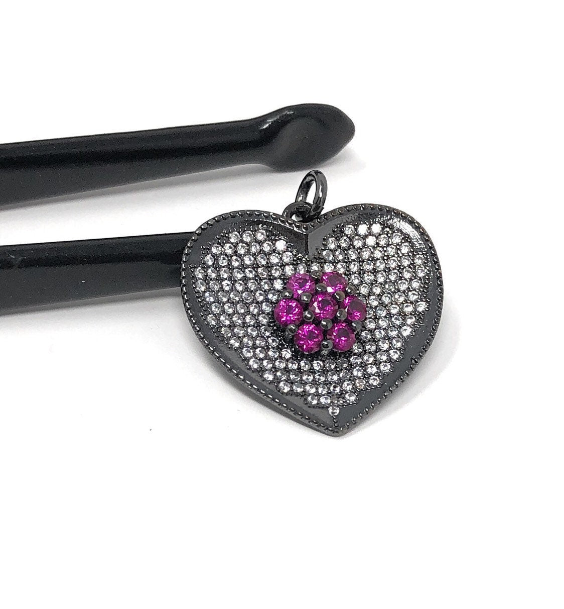 CZ Micro Pave Heart Charm Jewelry Supplies for DIY Jewelry.